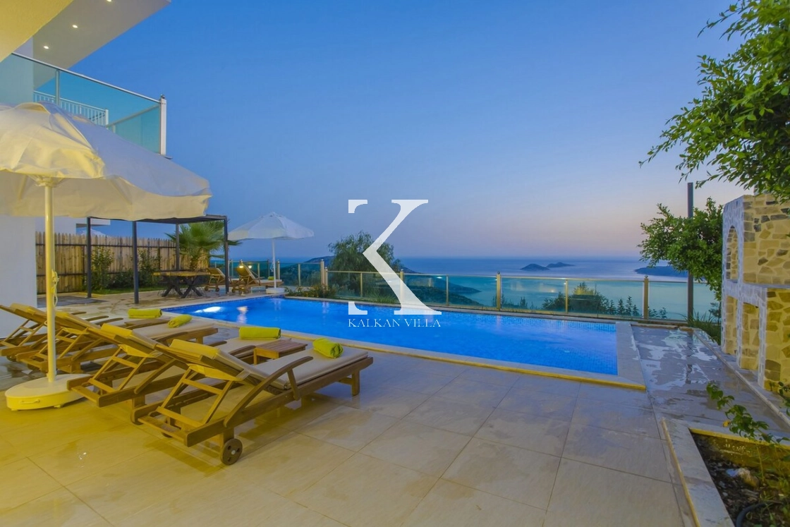 Şık tasarımı, ferah yaşam alanları ve deniz manzarasına hâkim konumuyla dikkat çeken villamızda, güne Kalkan Körfezi’nin muhteşem manzarasıyla başlayabilir, gün batımını sevdiklerinizle birlikte izleyebilirsiniz.