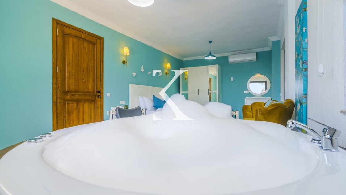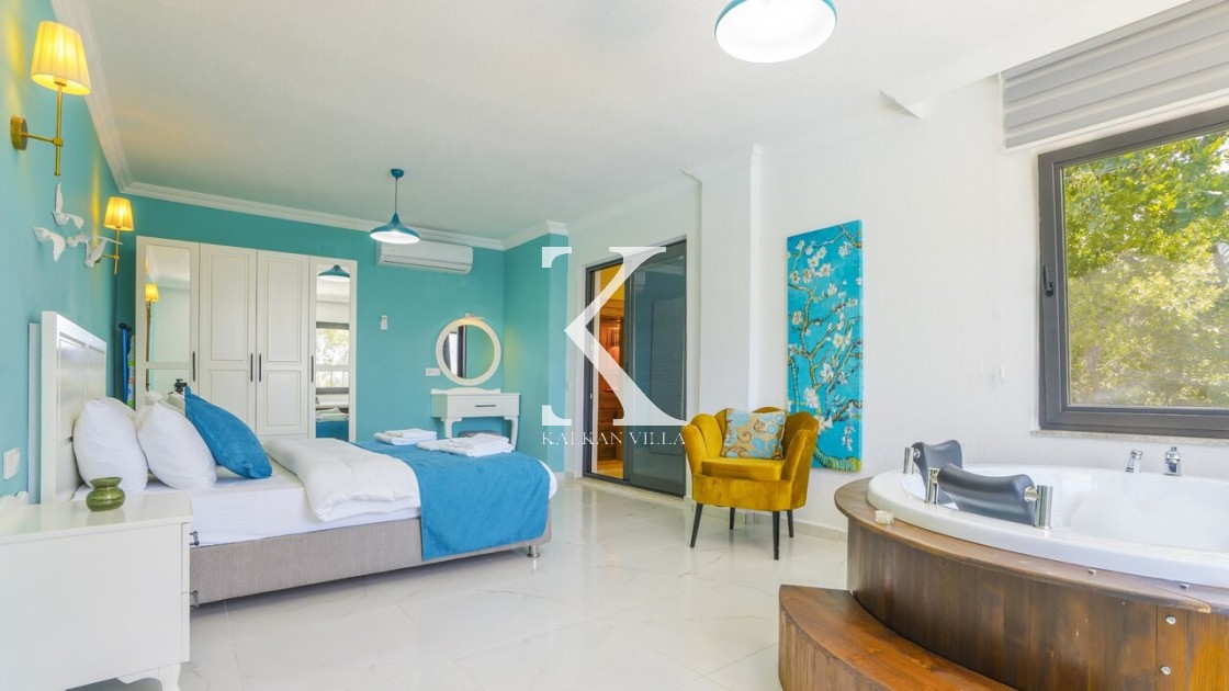 Bir adet çift kişilik yatak, klima, elbise dolabı, komodin, makyaj masası, jakuzi, banyo ve tuvalet bulunmaktadır. Odaydan havuz terasına çıkış yapılabilmektedir. Özellikle balayı çiftleri için romantik ve konforlu bir ortam sunar.