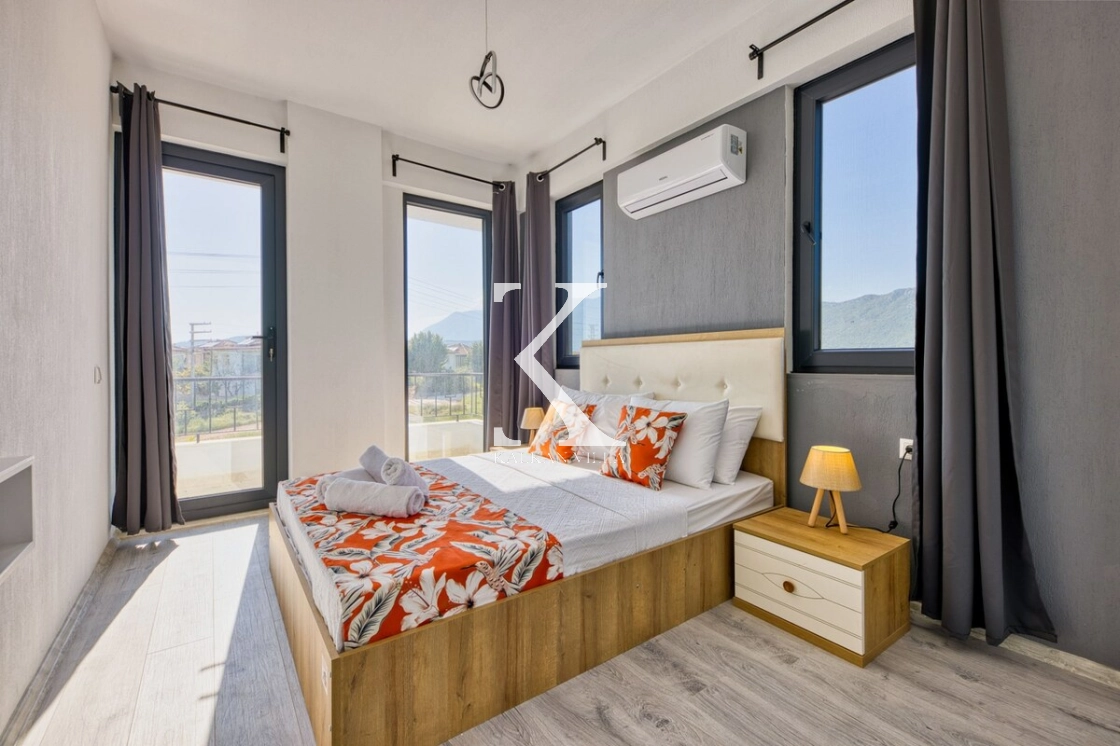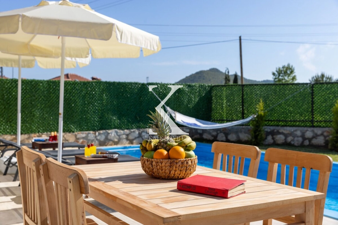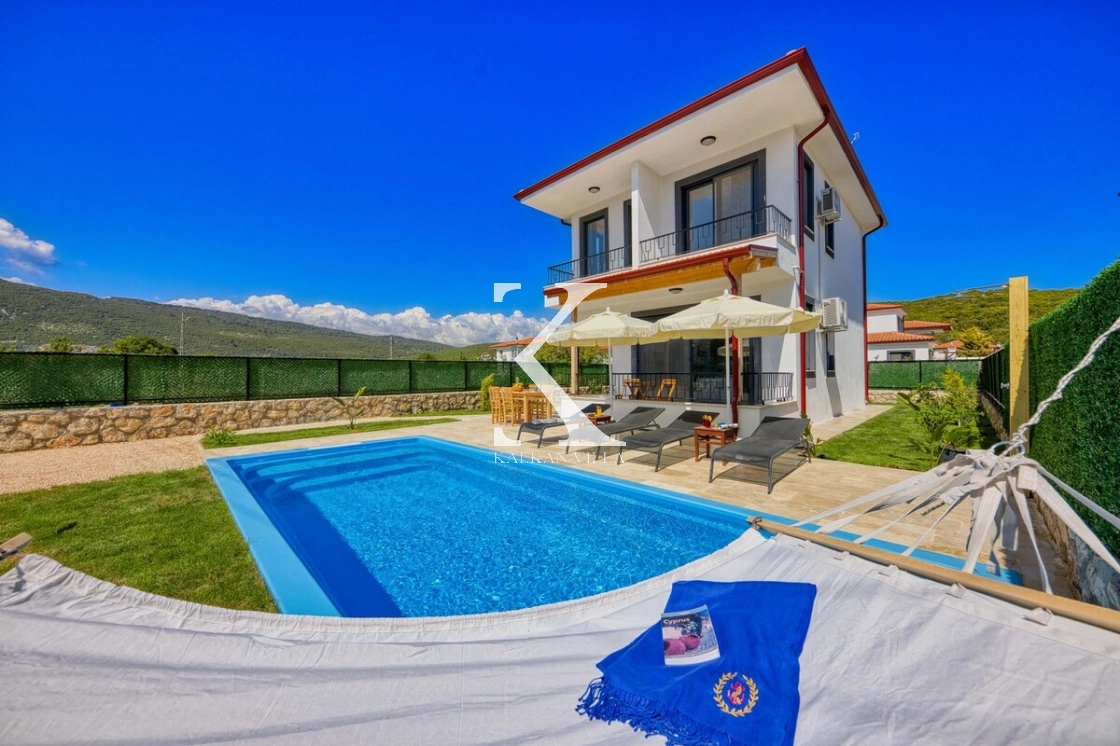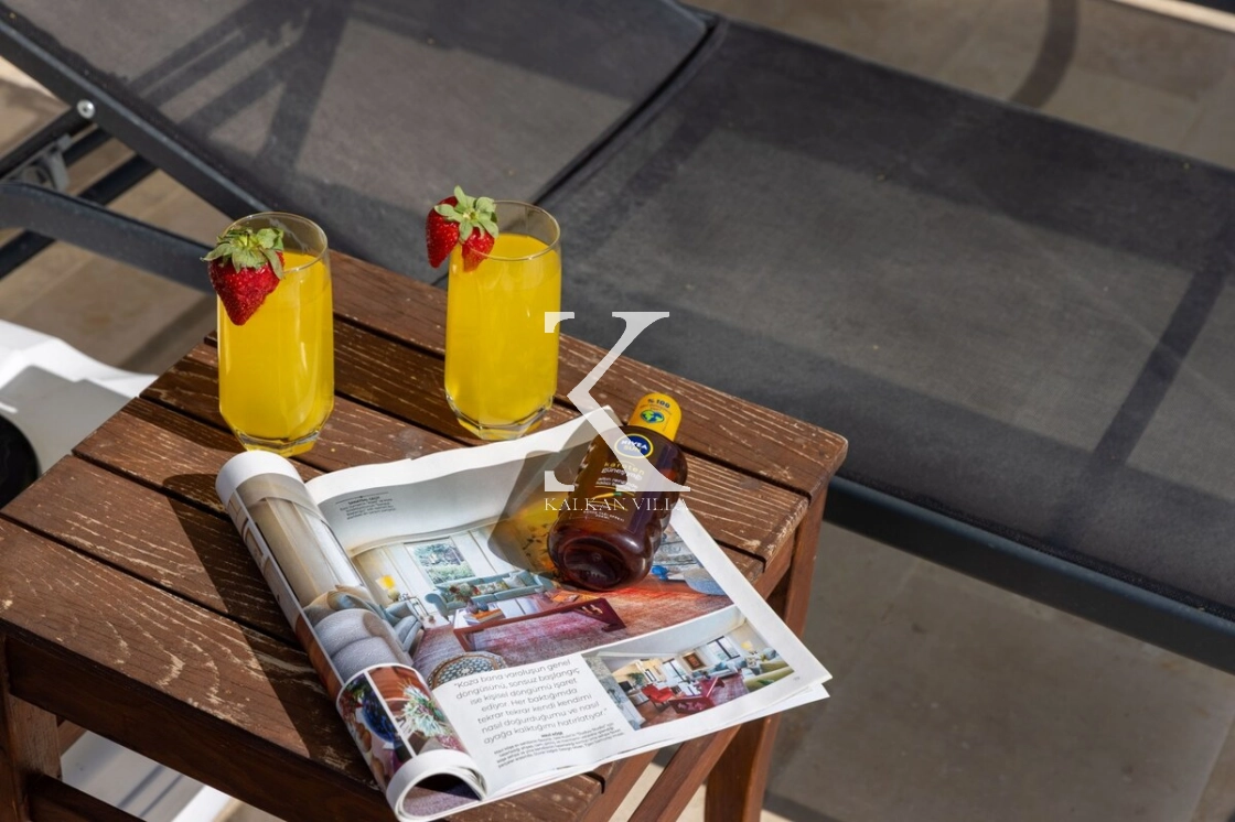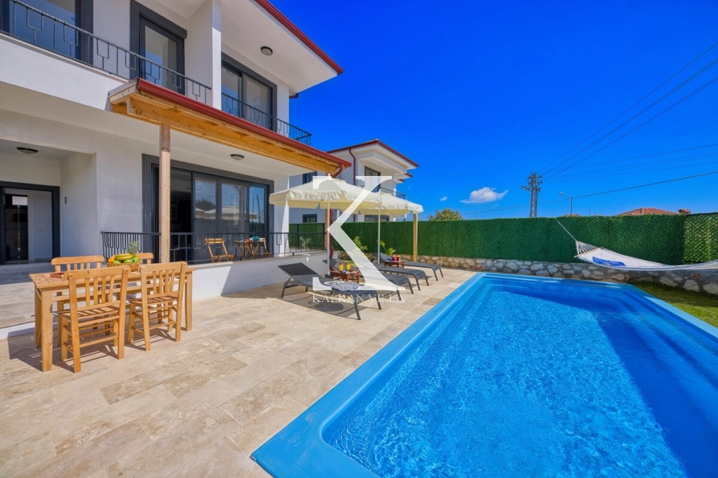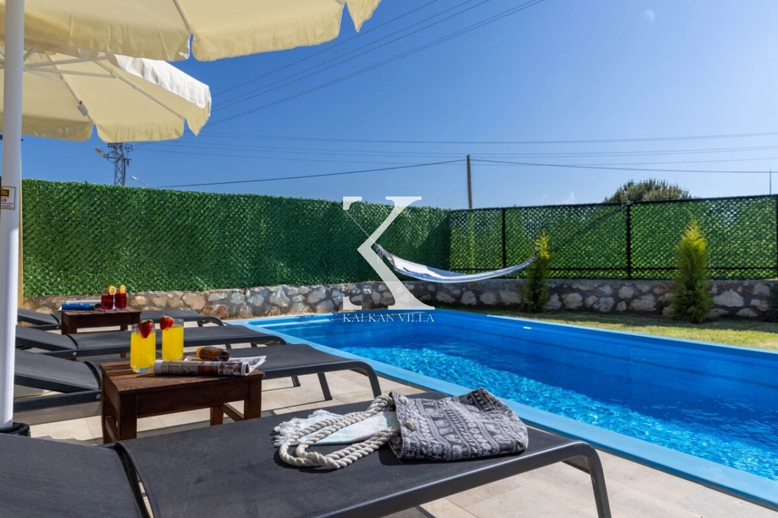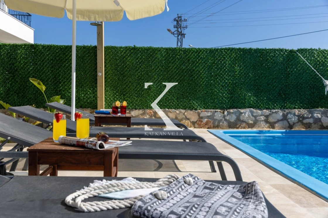 Modern ve işlevsel iç tasarımıyla ev konforunu doğayla bir araya getiren bu villa, Kaş’ta sakin ve keyifli bir tatil geçirmek isteyenler için ideal bir tercihtir.