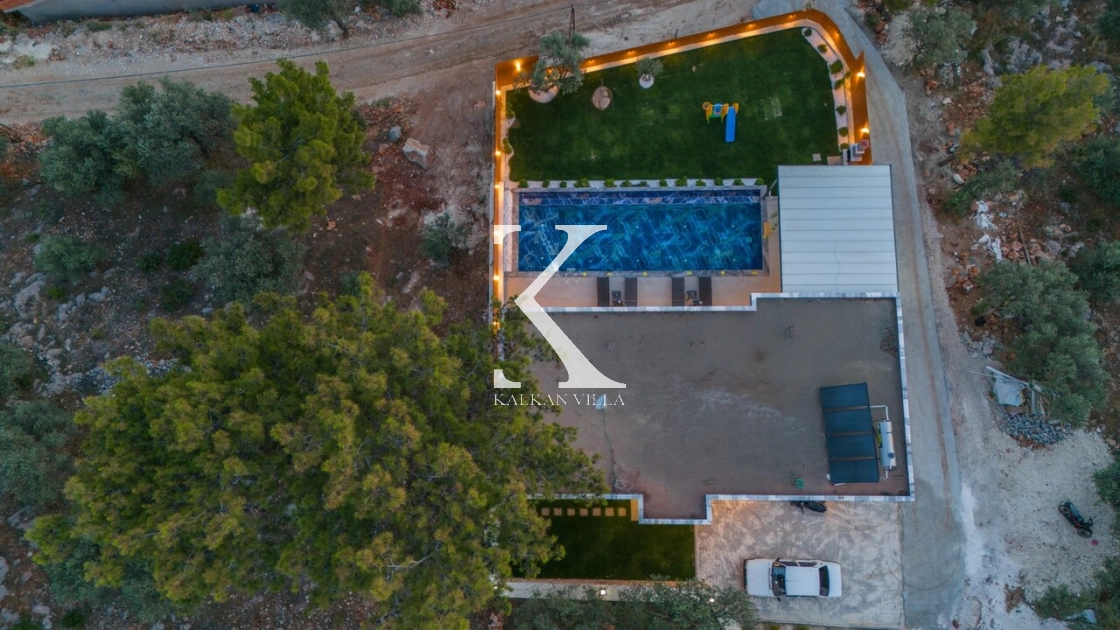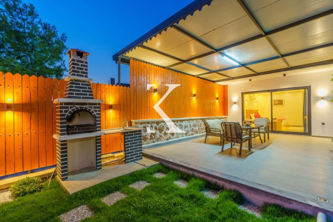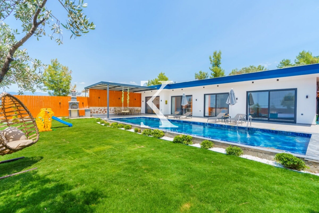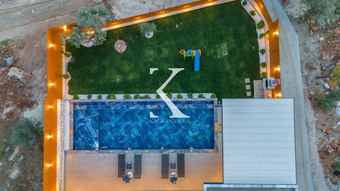 Tamamen korunaklı olarak tasarlanan villanın geniş bahçesinde; özel yüzme havuzu, çocuk havuzu, şezlonglar ve barbekü alanı bulunmaktadır. Bahçe alanı dışarıdan görünmeyecek şekilde planlandığı için, özellikle mahremiyete önem veren aileler için büyük bir avantaj sağlar.