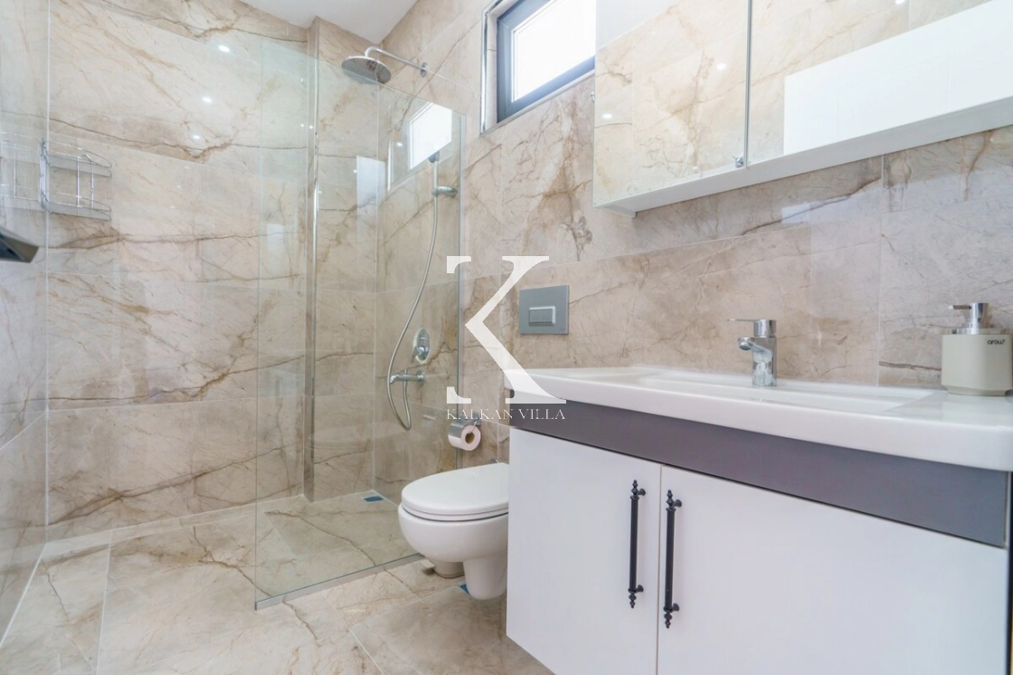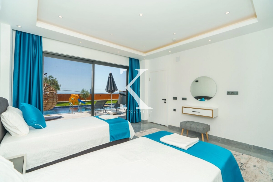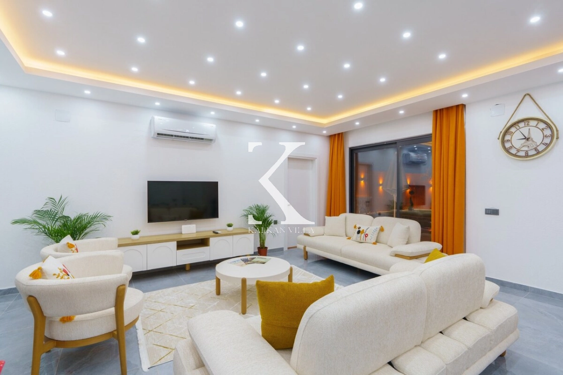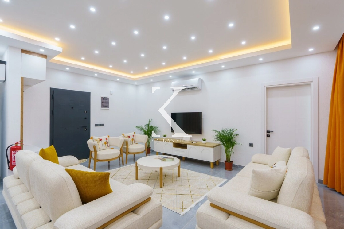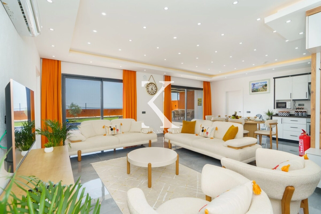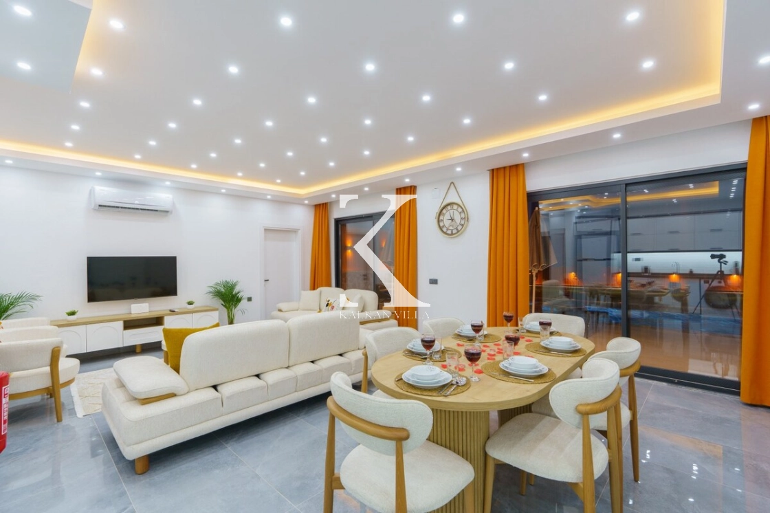 Manzaralı ve ferah salon içerisinde lüks oturma grubu, TV, klima, sehpa ve DVD oynatıcı yer almaktadır. Salondan havuz terasına direkt çıkış bulunmaktadır.