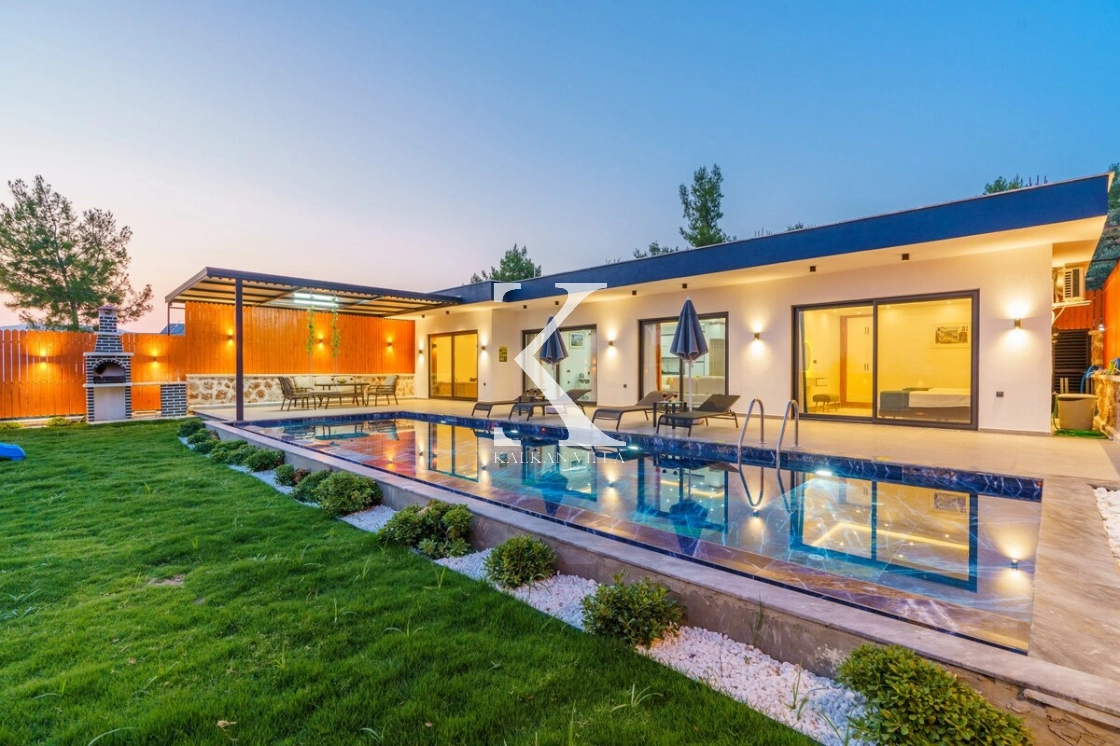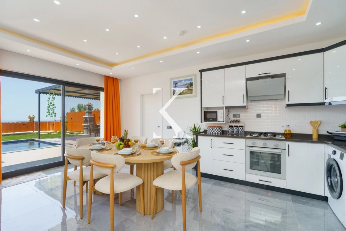 Ferah salonunda yer alan modern Amerikan mutfak ve konforlu mobilyalar, ev rahatlığında bir tatil deneyimi sunar. Villada bulunan jakuzi, tatilinize ekstra konfor ve keyif katarken; doğa içinde sakin bir atmosferde hem bedeninizi hem de ruhunuzu dinlendirme imkânı sağlar.