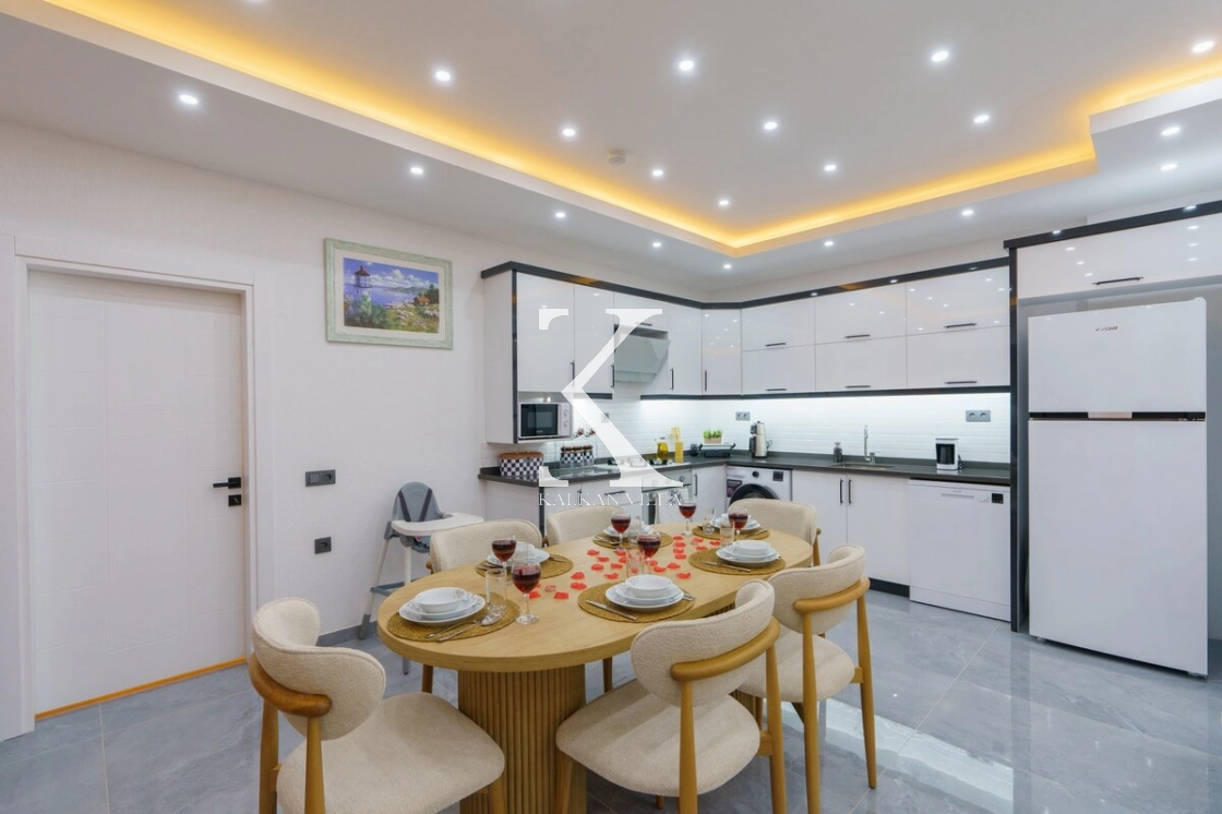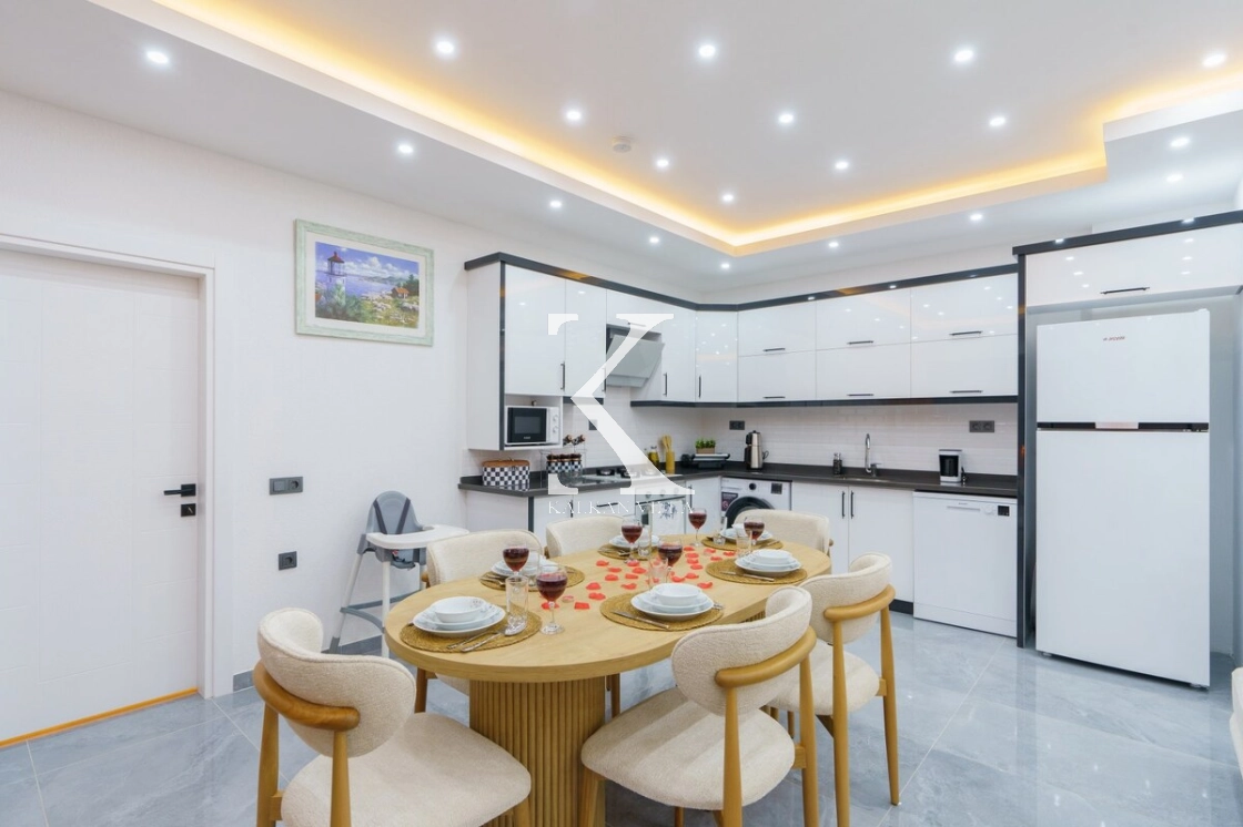 Tam donanımlı modern Amerikan mutfak içerisinde; buzdolabı, bulaşık makinesi, fırın, ocak, mikrodalga fırın, elektrikli su ısıtıcısı, yemek masası, yemek takımları, çatal-bıçak seti, tencere-tava takımları ve bardaklar bulunmaktadır.