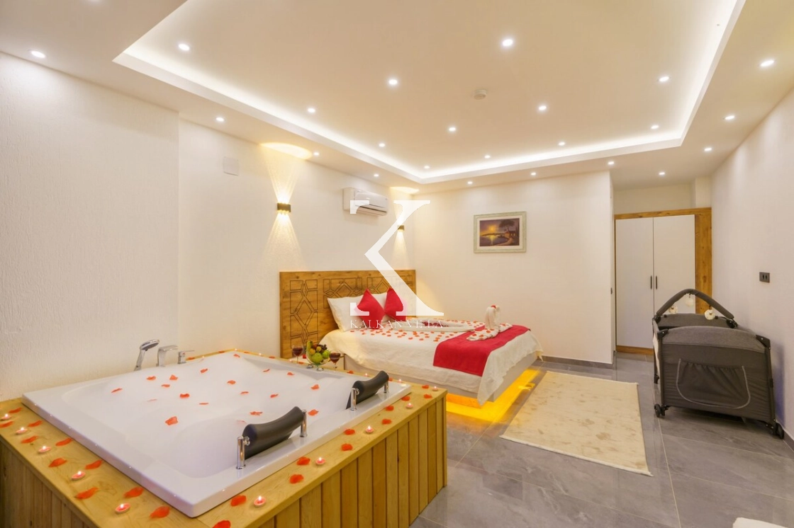 Çift kişilik yatak, balkon, elbise dolabı, komodin, jakuzi, klima, TV, banyo ve tuvalet bulunmaktadır.