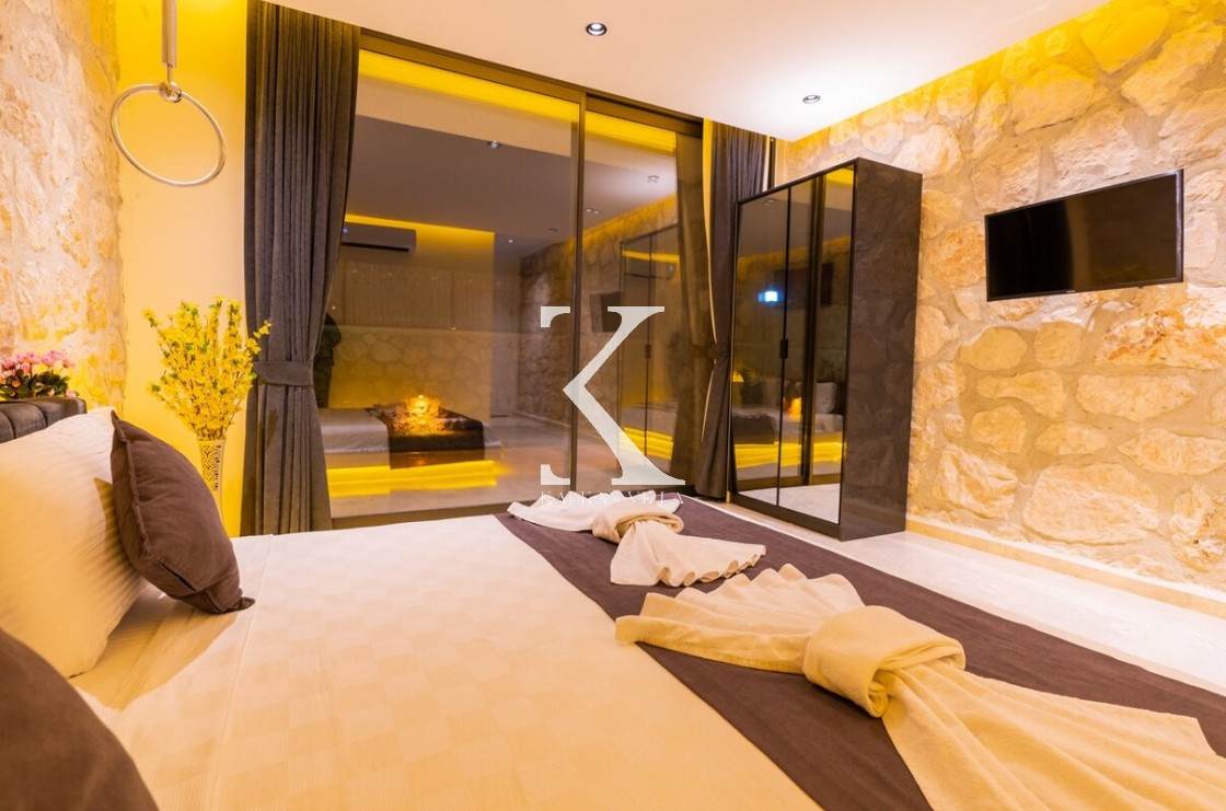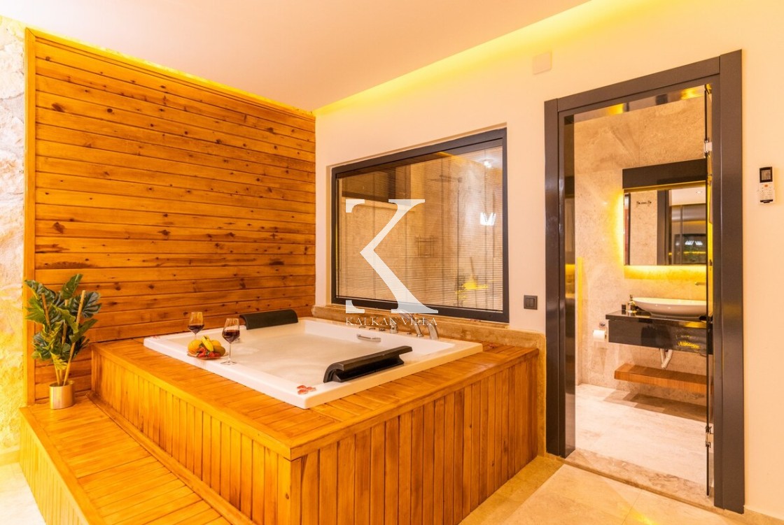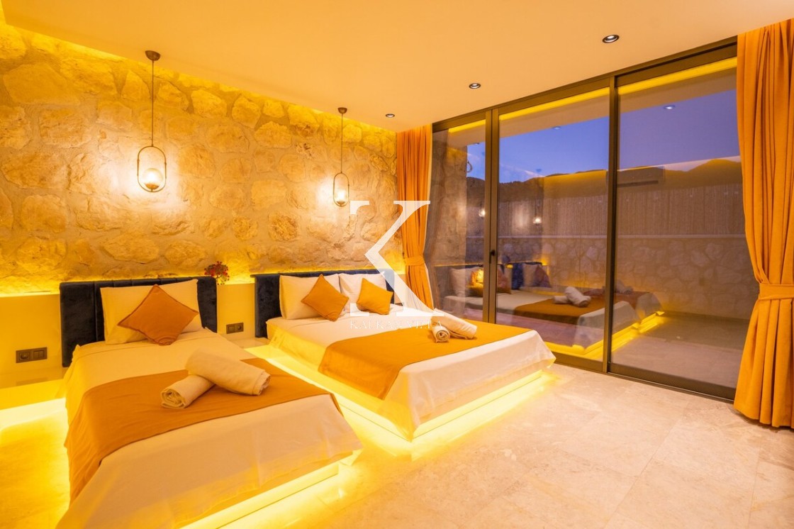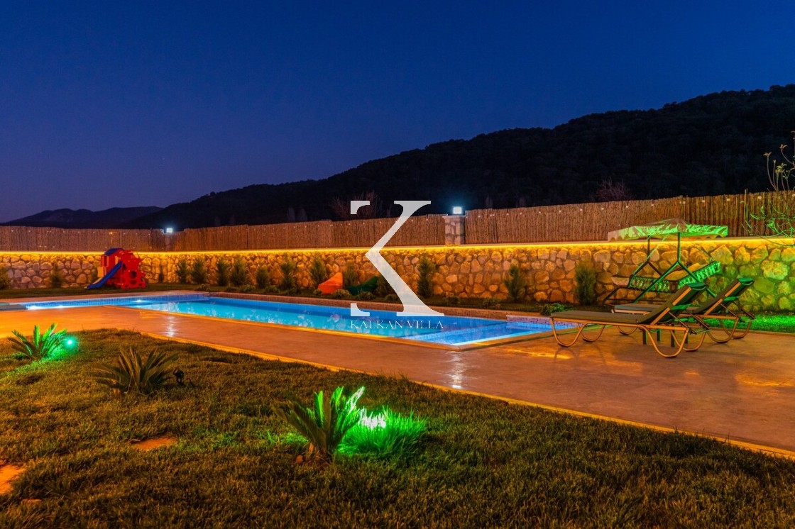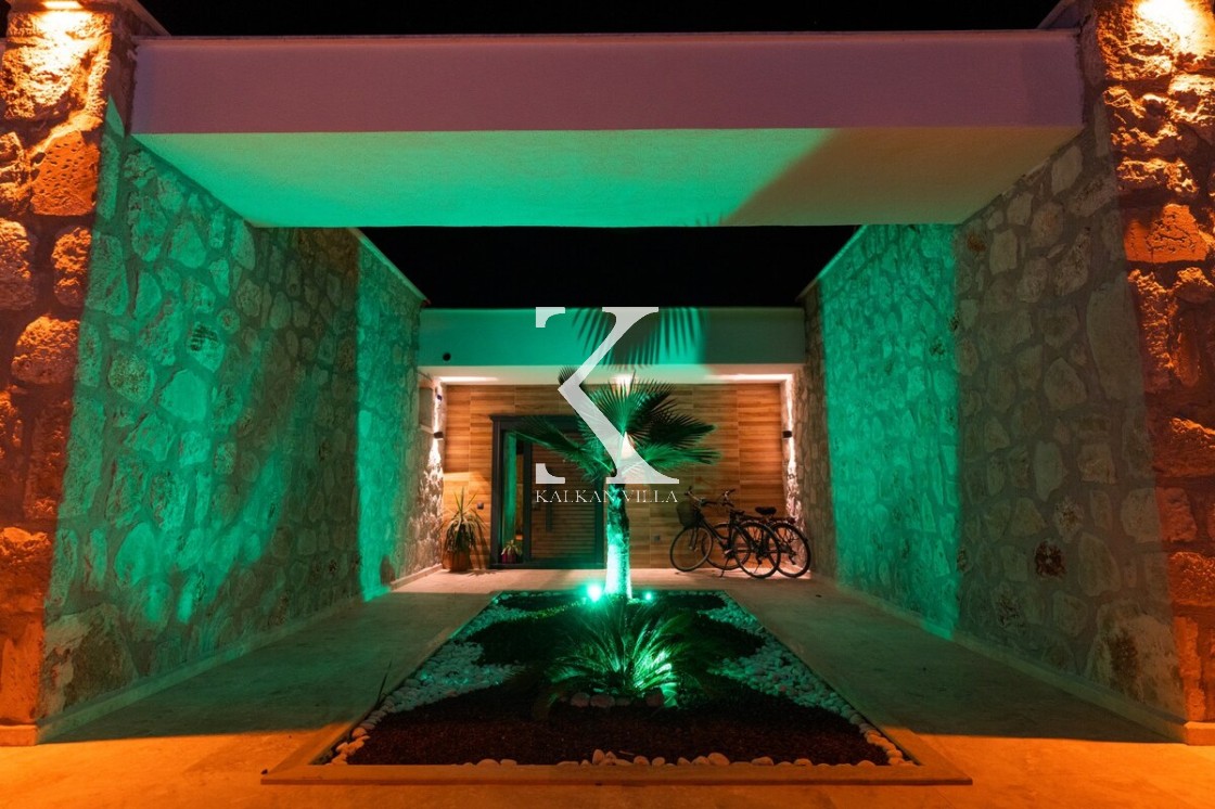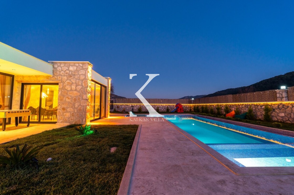 Kalkan’ın sakin ve huzurlu Sarıbelen bölgesinde konumlanan Villa Vip, doğayla iç içe, şehir gürültüsünden uzak konumu ve korunaklı havuzu ile özellikle muhafazakâr aileler ve çocuklu misafirler için ideal bir tatil ortamı sunar. Modern çizgilere sahip villada; jakuzi, sauna, buhar odası ve ısıtmalı kapalı havuz gibi spa ayrıcalıkları; çocuk parkı ve spor ekipmanları ise keyif ve hareketi bir araya getirir. Giriş katta doğa manzaralı Amerikan mutfak & salon, yatak odaları ise süit olarak planlanmıştır.