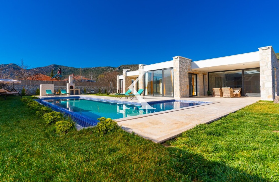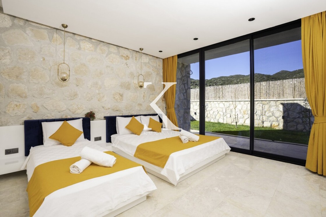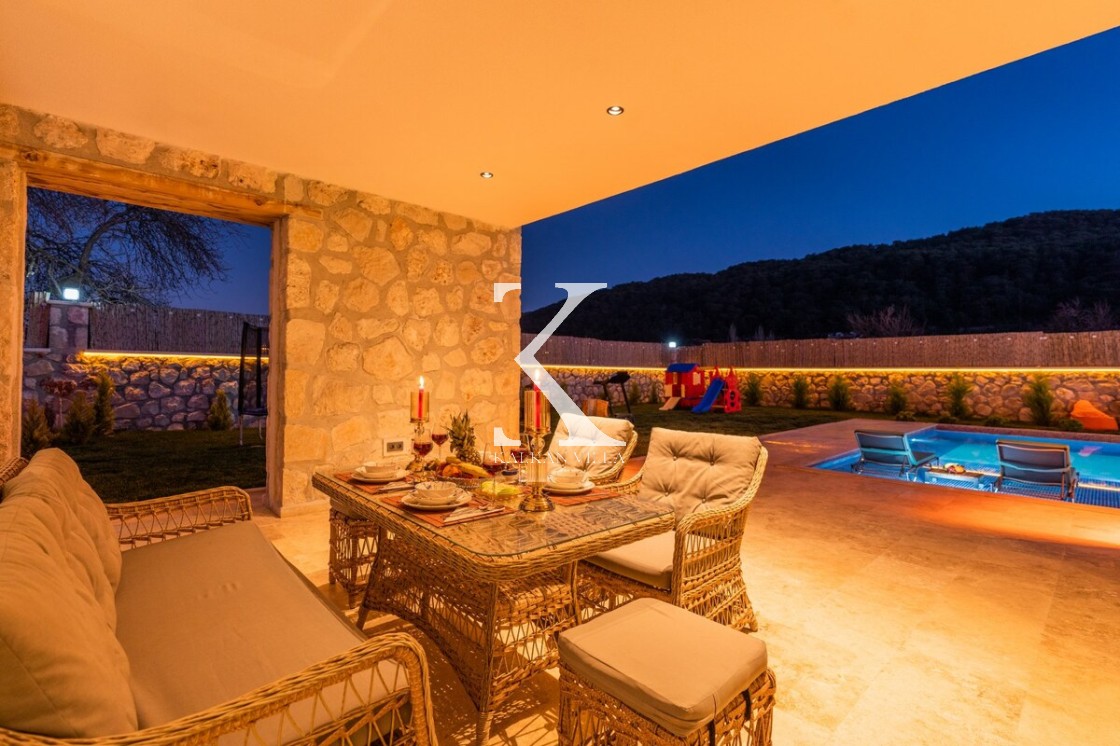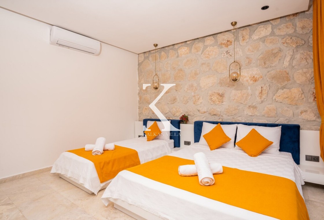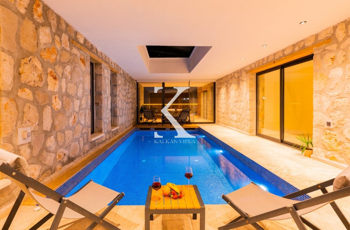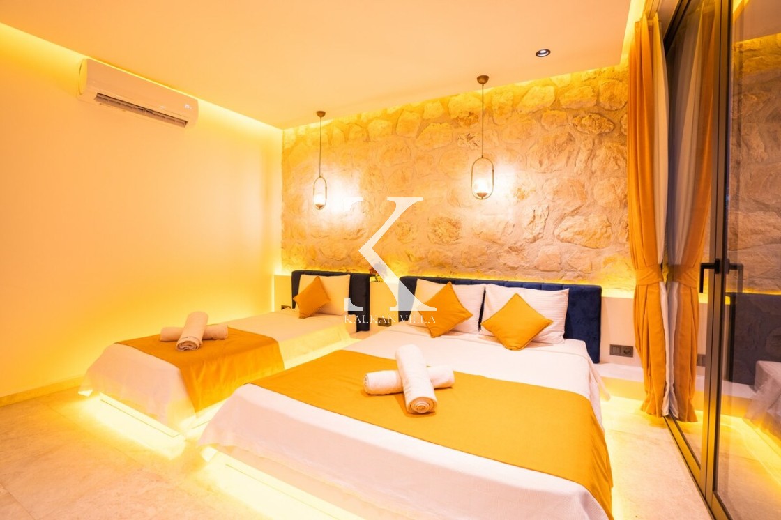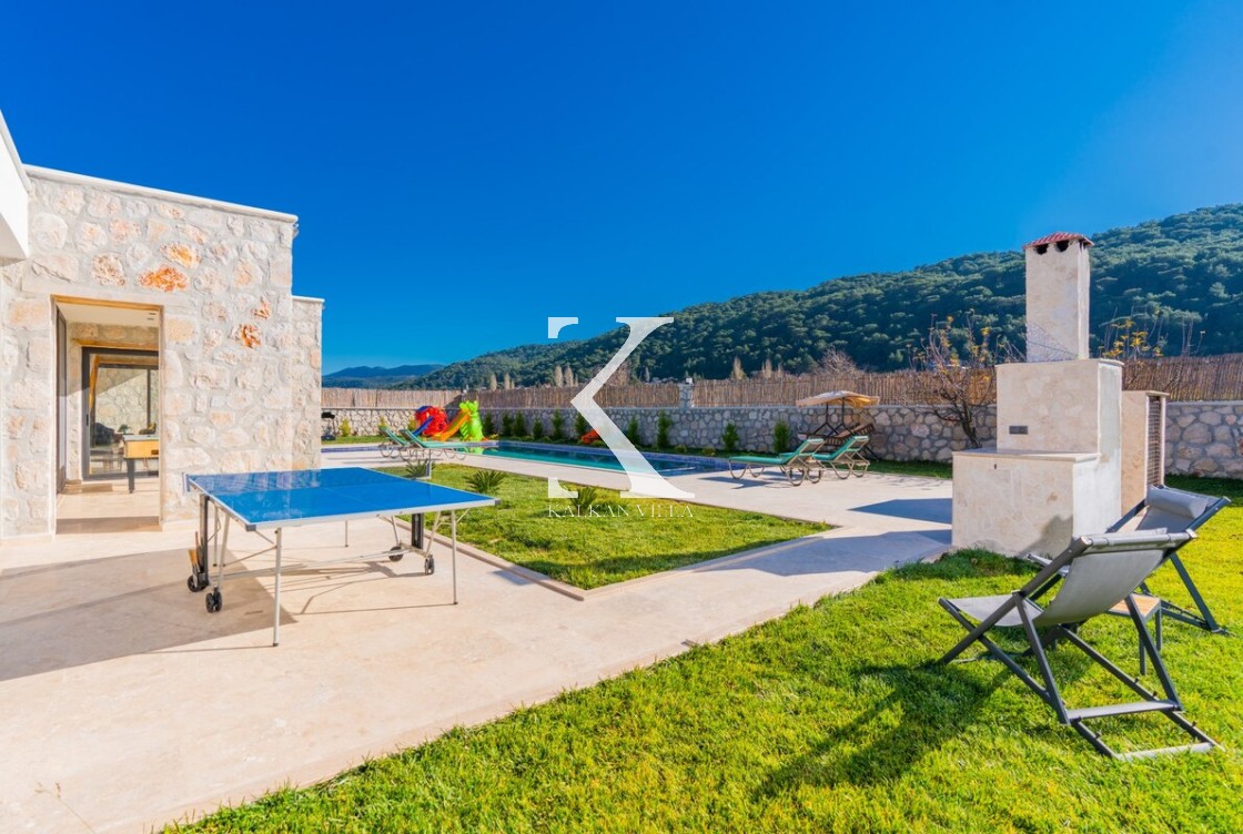 Kalkan’ın sakin ve huzurlu Sarıbelen bölgesinde konumlanan Villa Vip, doğayla iç içe, şehir gürültüsünden uzak konumu ve korunaklı havuzu ile özellikle muhafazakâr aileler ve çocuklu misafirler için ideal bir tatil ortamı sunar. Modern çizgilere sahip villada; jakuzi, sauna, buhar odası ve ısıtmalı kapalı havuz gibi spa ayrıcalıkları; çocuk parkı ve spor ekipmanları ise keyif ve hareketi bir araya getirir. Giriş katta doğa manzaralı Amerikan mutfak & salon, yatak odaları ise süit olarak planlanmıştır.