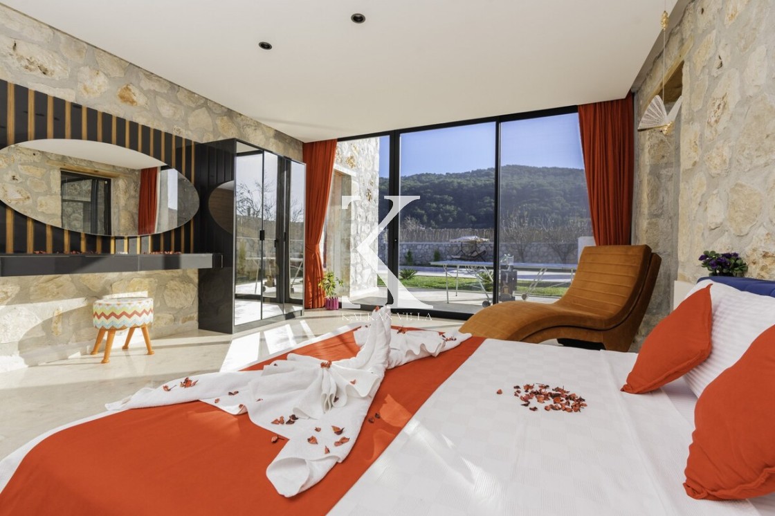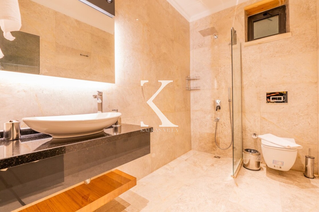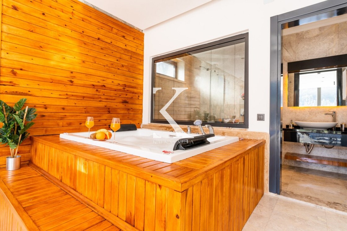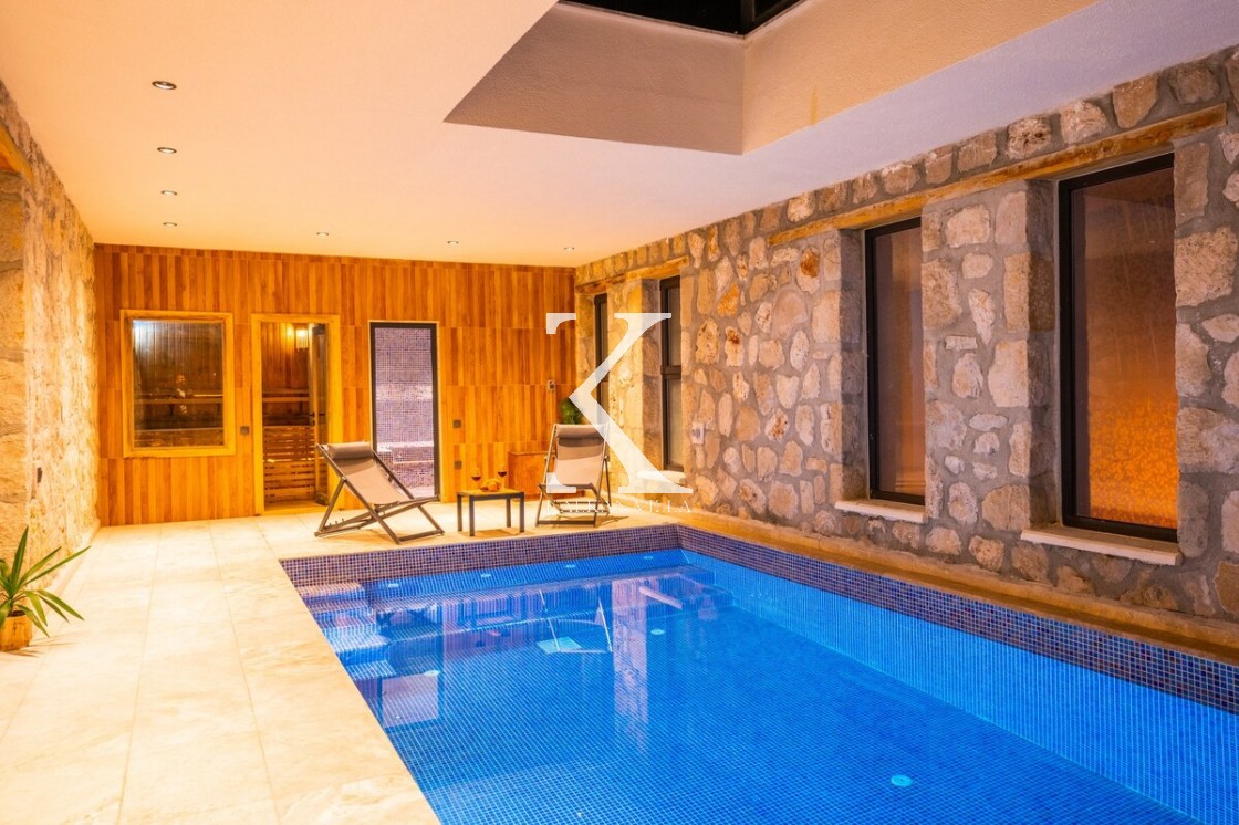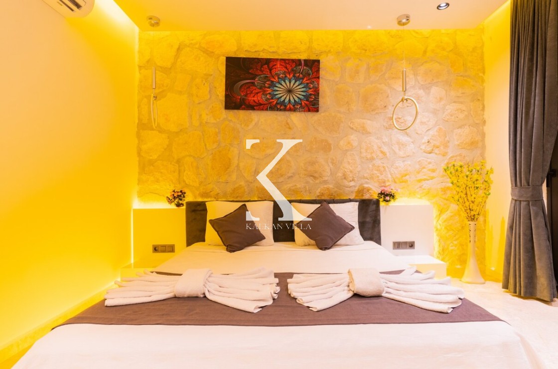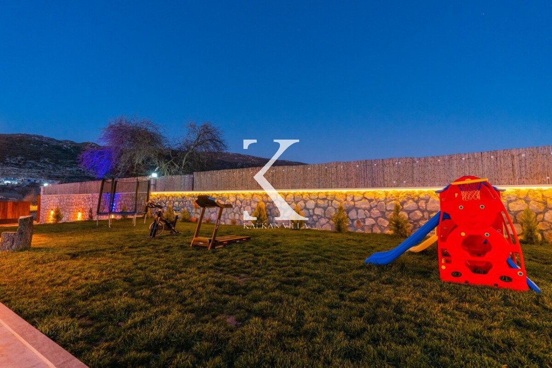 Kalkan’ın sakin ve huzurlu Sarıbelen bölgesinde konumlanan Villa Vip, doğayla iç içe, şehir gürültüsünden uzak konumu ve korunaklı havuzu ile özellikle muhafazakâr aileler ve çocuklu misafirler için ideal bir tatil ortamı sunar. Modern çizgilere sahip villada; jakuzi, sauna, buhar odası ve ısıtmalı kapalı havuz gibi spa ayrıcalıkları; çocuk parkı ve spor ekipmanları ise keyif ve hareketi bir araya getirir. Giriş katta doğa manzaralı Amerikan mutfak & salon, yatak odaları ise süit olarak planlanmıştır.