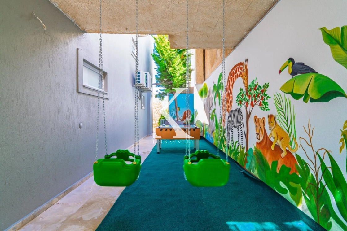 Villanın özel yüzme havuzu ve geniş havuz terası, gün boyu güneşin ve manzaranın tadını çıkarabileceğiniz şekilde tasarlanmıştır. Korunaklı yapısı sayesinde gözlerden uzak, tamamen size özel bir tatil ortamı sunarak özellikle mahremiyete önem veren misafirler için ideal bir seçenek oluşturmaktadır.