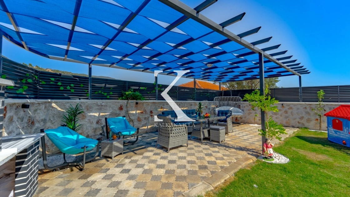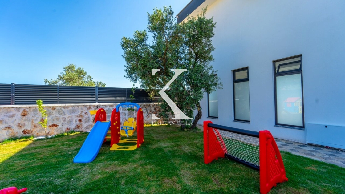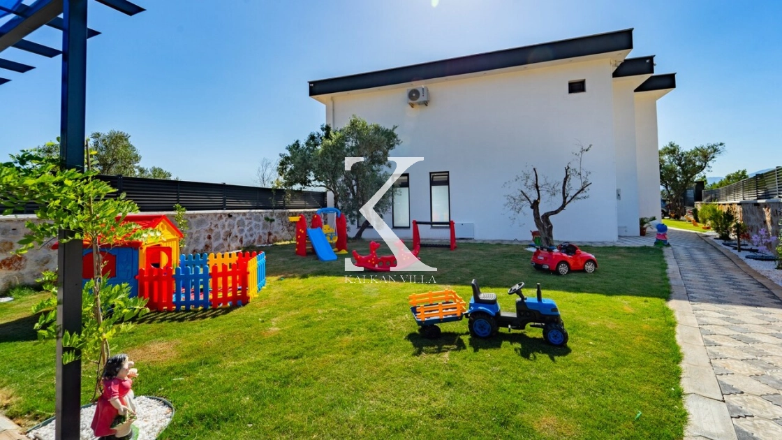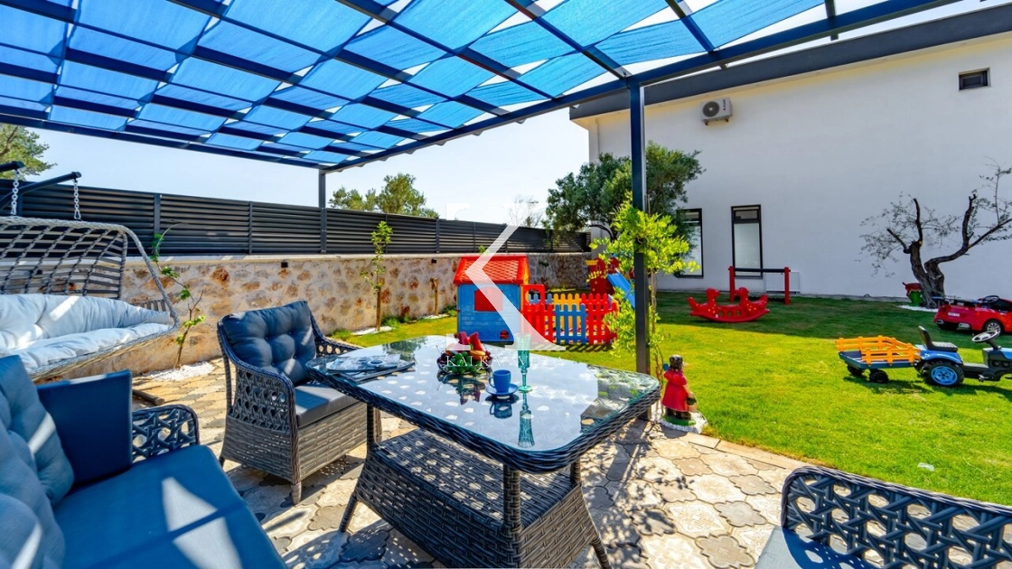 Geniş bahçesinde çocuk oyun alanı, çift barbekü, özel havuz ve doğa manzaralı oturma alanı yer alır.