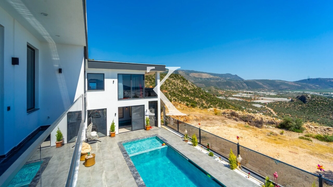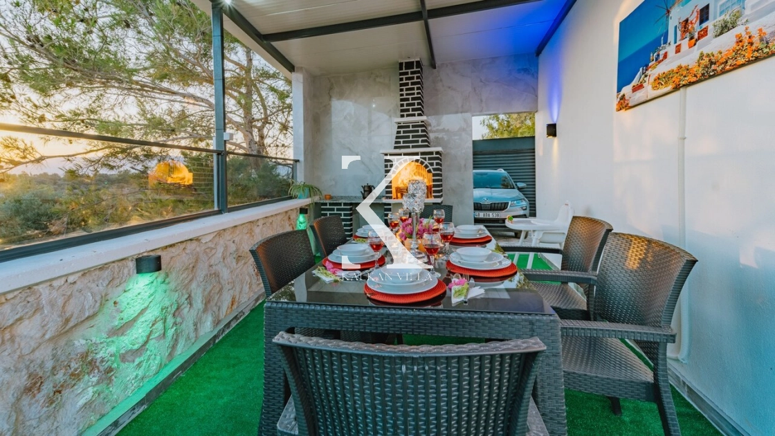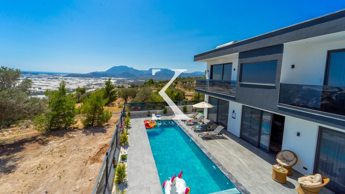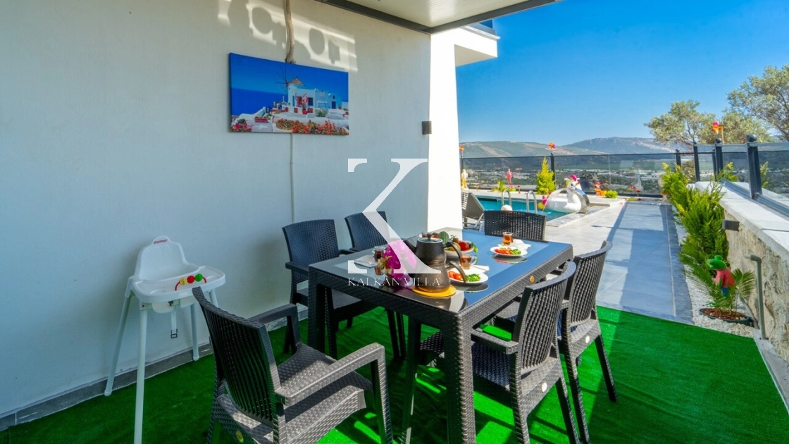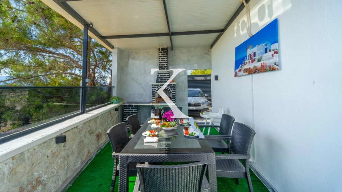 Geniş bahçesinde çocuk oyun alanı, çift barbekü, özel havuz ve doğa manzaralı oturma alanı yer alır.