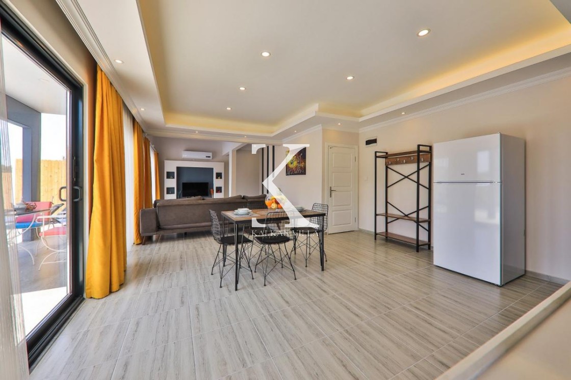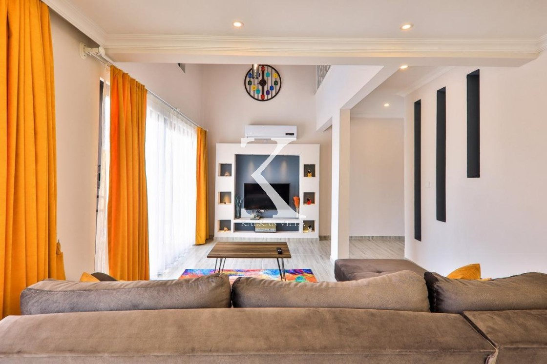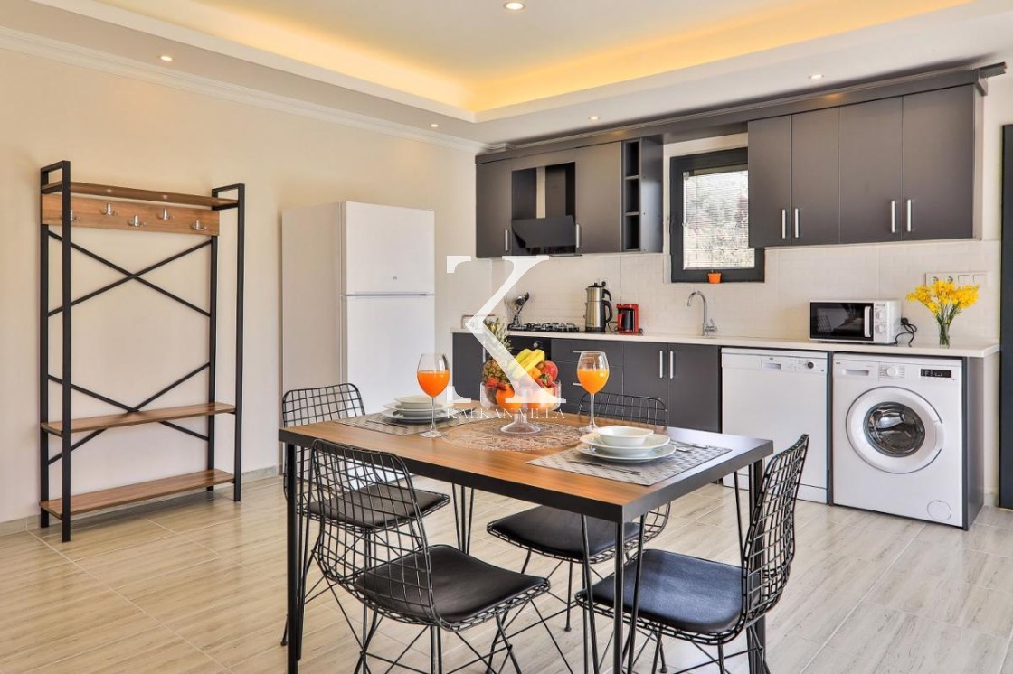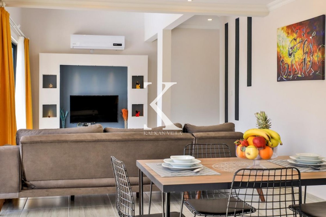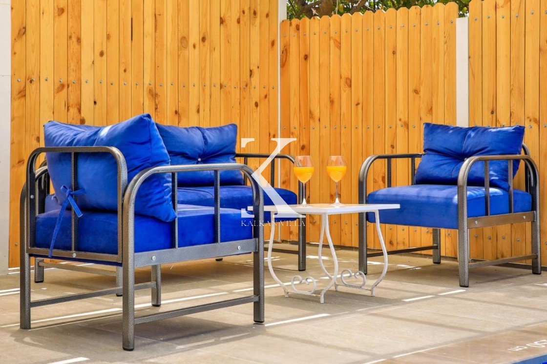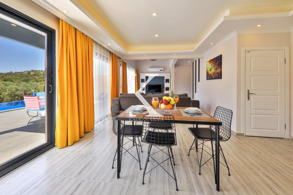 Salondan havuz terasına doğrudan geçiş yapılabilir, böylece iç ve dış alanlarda tatil keyfi bir arada yaşanır.