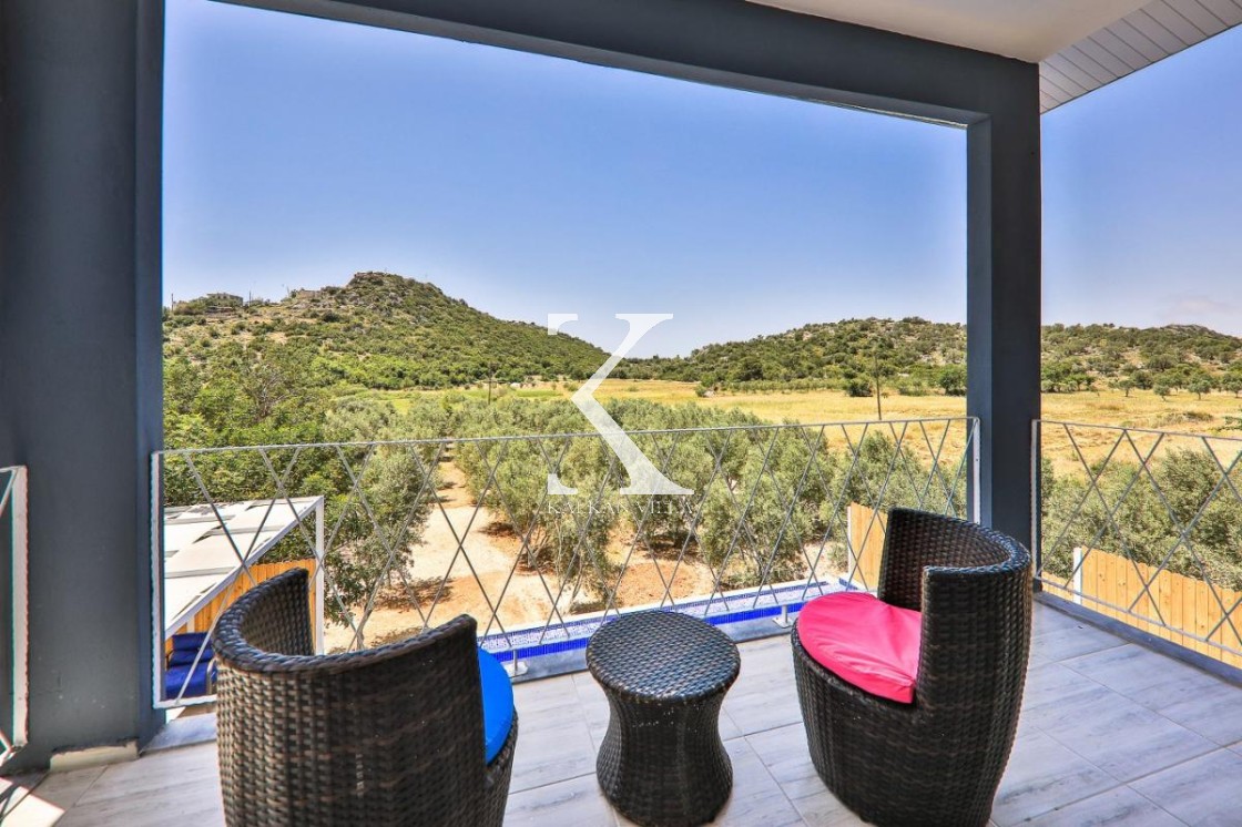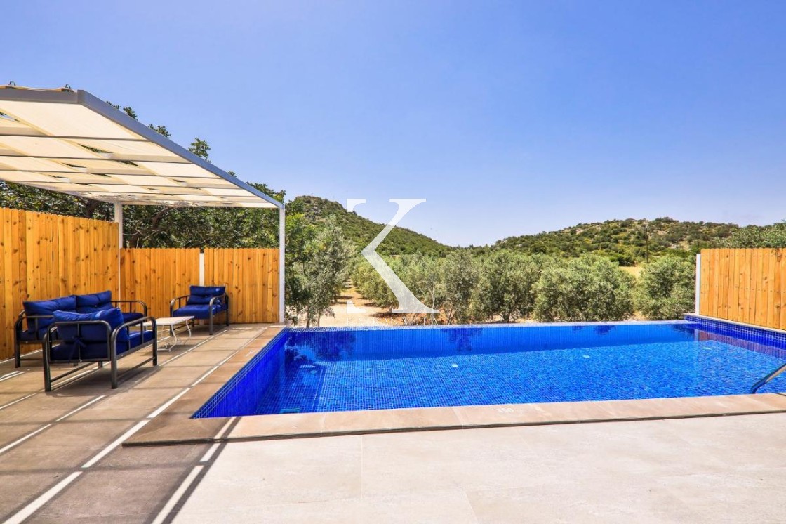 Zeytin ağaçlarıyla çevrili bu şık çelik konstrüksiyon villa, hem mahremiyeti hem de konforu bir arada sunarak, sakinlik ve huzur arayan misafirler için mükemmel bir kaçış noktasıdır.