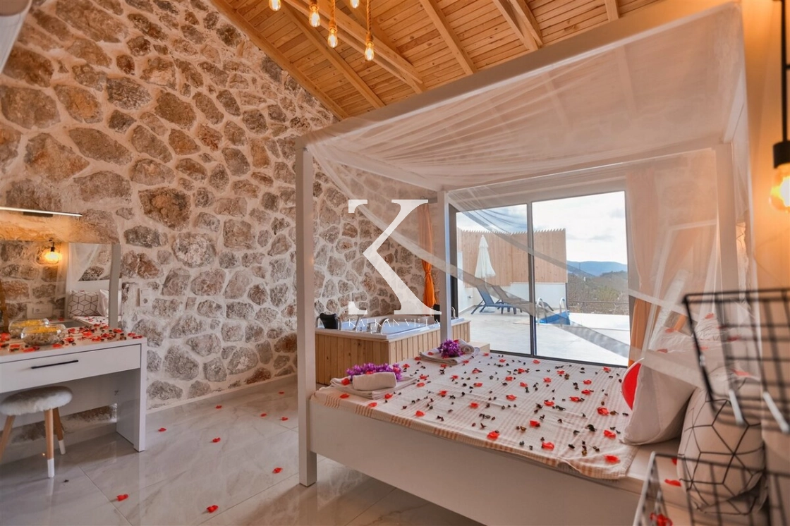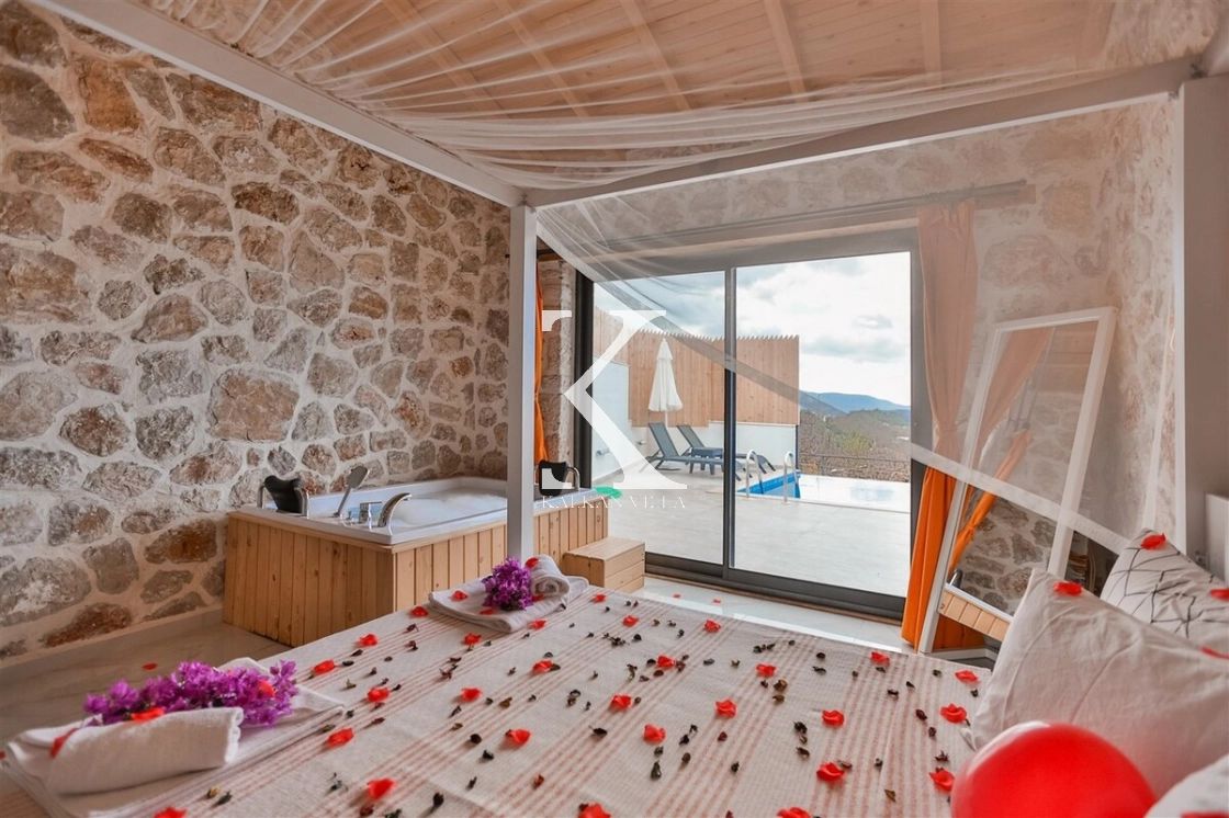 Villa Yaman Üzümlü, Kalkan’ın yemyeşil doğasıyla çevrili, sakinlik ve huzurun hâkim olduğu Üzümlü Mahallesi’nde konumlanan özel bir balayı villasıdır. Korunaklı havuzu, mahremiyet odaklı yapısı ve romantik atmosferiyle özellikle gözlerden uzak tatil arayan balayı çiftlerinin ilk tercihleri arasında yer alır.
