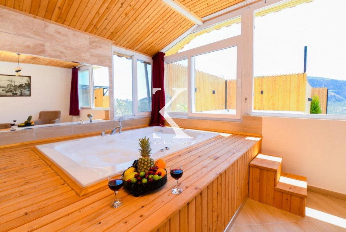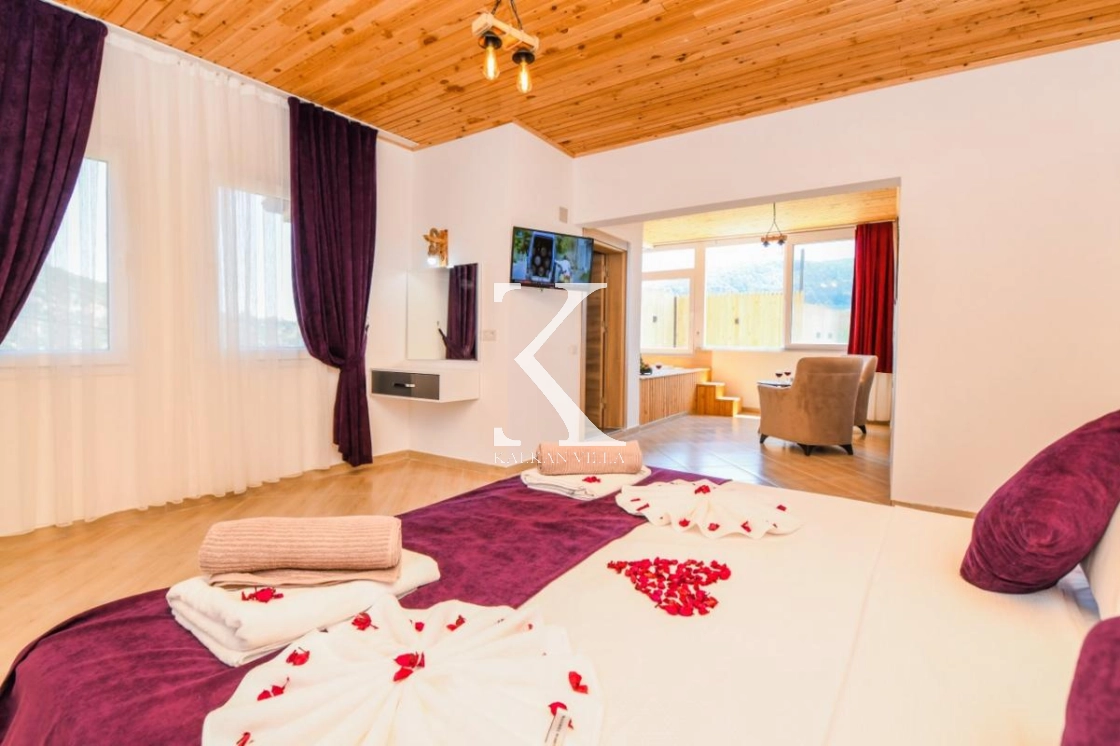 Villa Yazı 1, Kalkan’ın doğayla iç içe, huzurlu atmosferiyle bilinen Ulugöl bölgesinde konumlanmaktadır. Şehir kalabalığından uzak, sessiz ve sakin bir tatil arayan muhafazakâr aileler ve balayı çiftleri için ideal bir konaklama seçeneğidir.