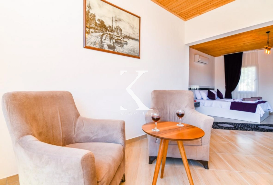 Konforlu oturma grubu, TV, DVD oynatıcı, uydu alıcısı, klima ve internet bulunan modern salonumuzdan havuz terasına direkt geçiş yapılabilmektedir.