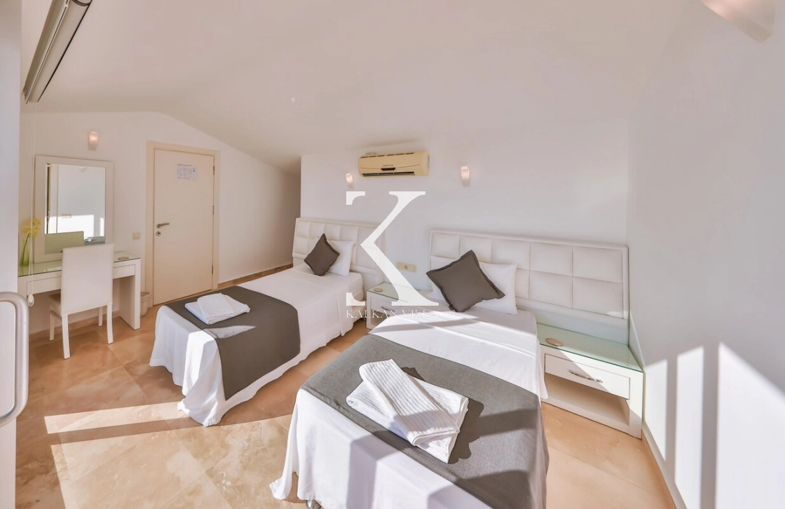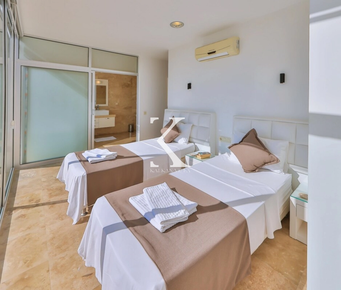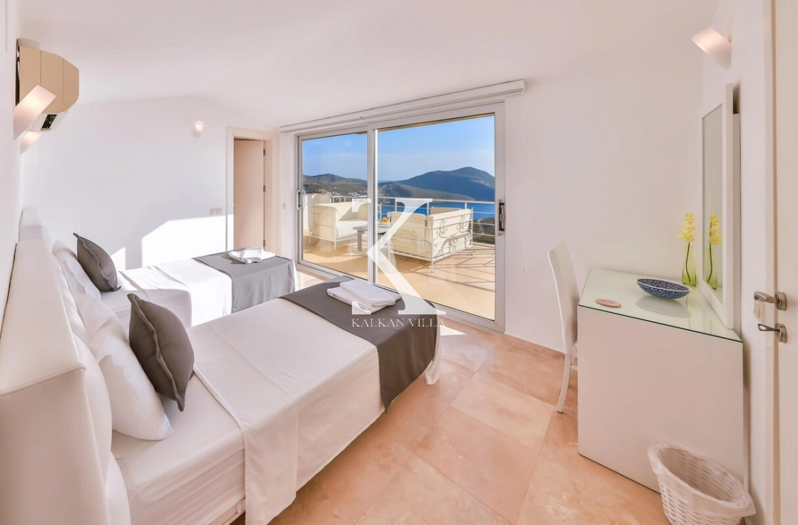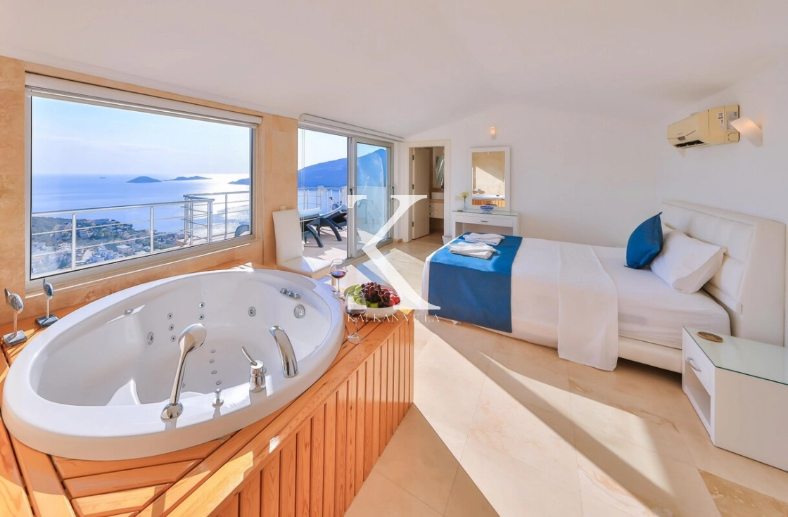 Tüm odaları ebeveyn banyolu olan villamızda, iki odada özel jakuzili süit bulunmaktadır. Odaların tamamı Kalkan ve Kalamar Koyu’nun büyüleyici deniz manzarasına sahiptir.