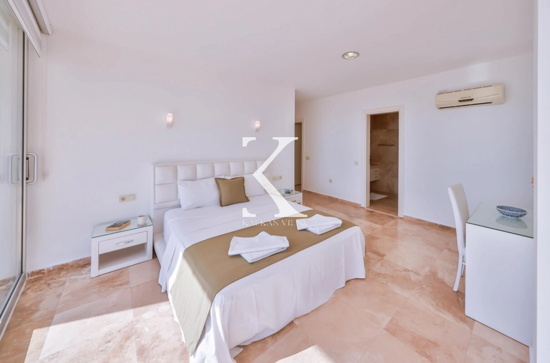 2. Yatak Odası (King En-Suite): Çift kişilik yatak, klima, banyo & balkon