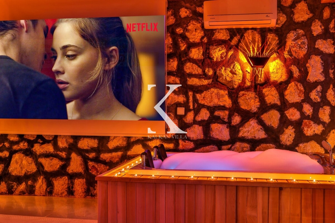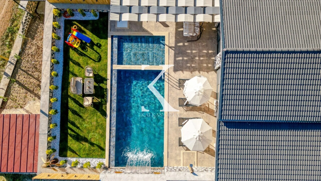 Korunaklı havuz terası ve bahçesi sayesinde özellikle muhafazakâr aileler için ideal bir ortam sunar. Bahçede özel yüzme havuzu, çocuk havuzu, oyun alanı, barbekü alanı, oturma köşesi, salıncak ve açık hava sineması yer almaktadır. Yatak odalarından birinde jakuzi ve sinema ekipmanları bulunurken, diğer odada TV mevcuttur.