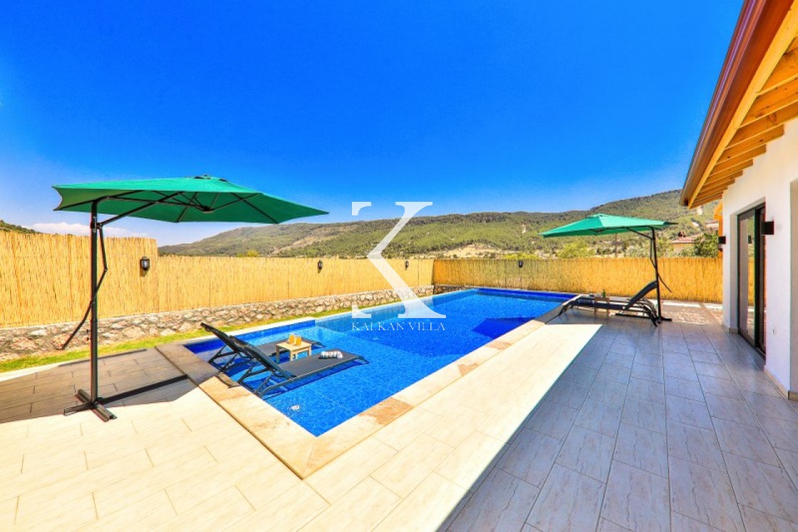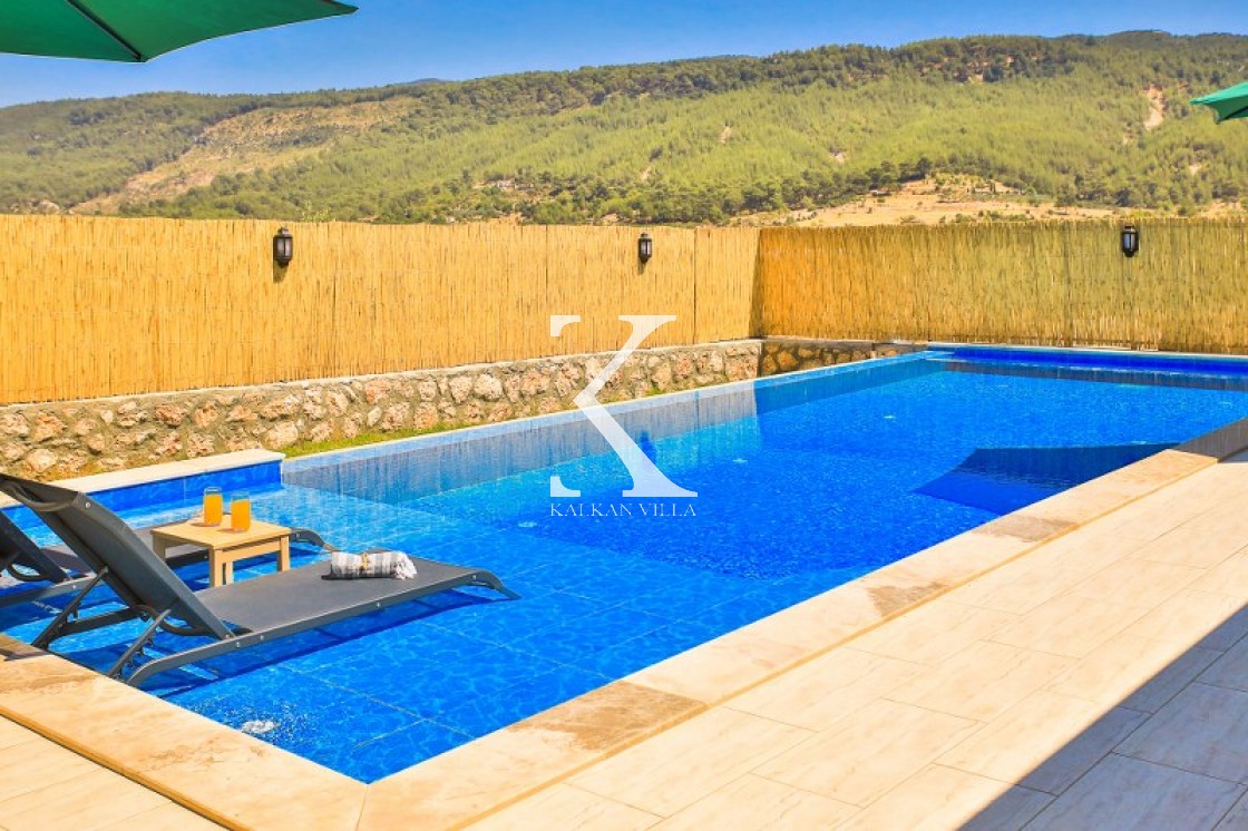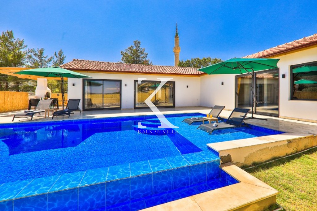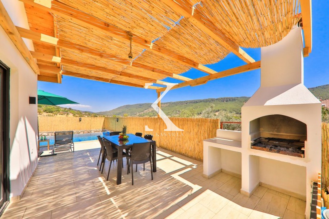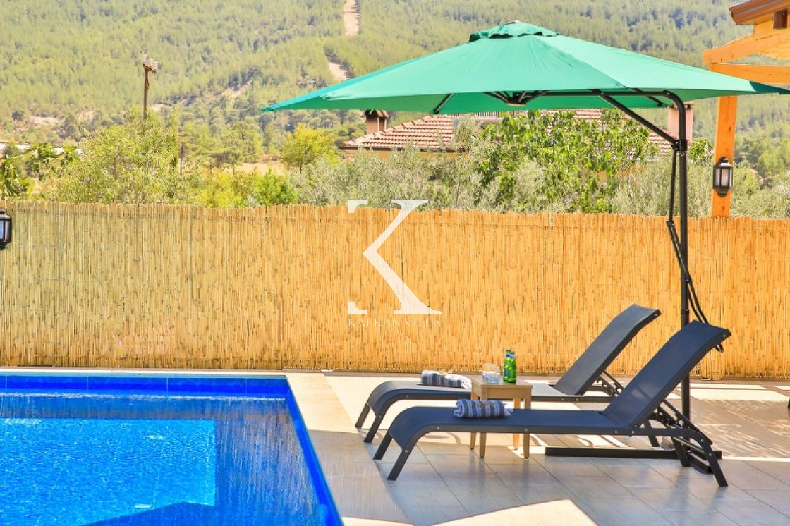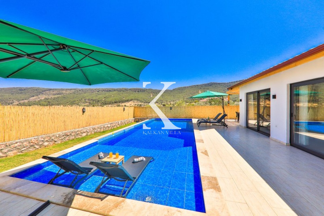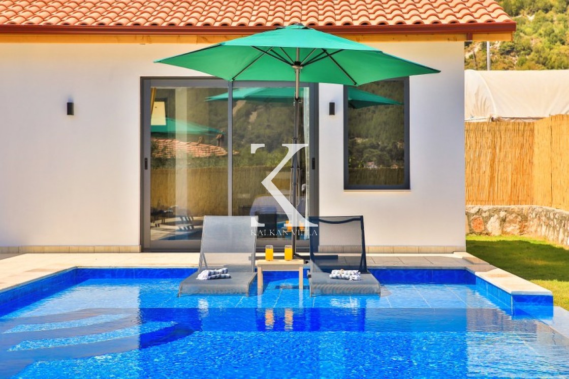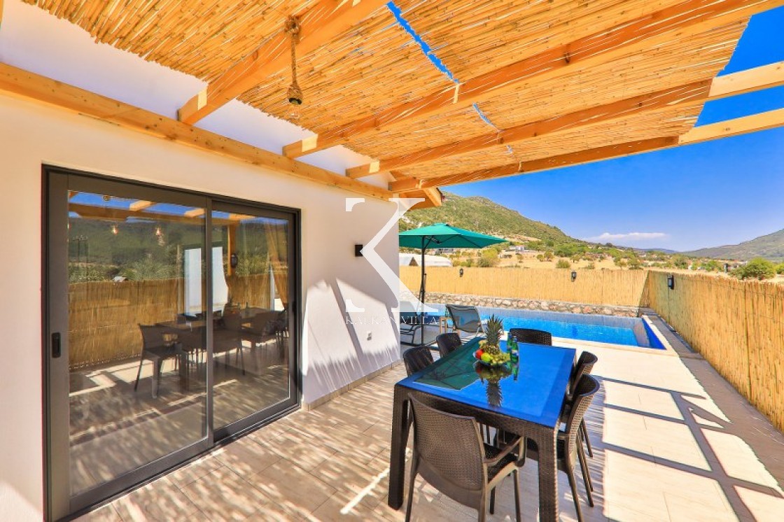 Villanın havuz terası ve bahçe alanı dış gözlerden korunaklı hale getirilmiştir. Böylece özellikle mahremiyetine önem veren misafirler için gönül rahatlığıyla tercih edilebilecek bir tatil ortamı sağlar. Geniş bahçesinde şezlonglar, salıncak, yemek alanı ve barbekü ile doğa manzarası eşliğinde keyifli anlar yaşayabilirsiniz.