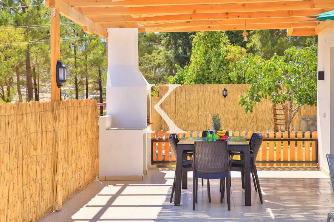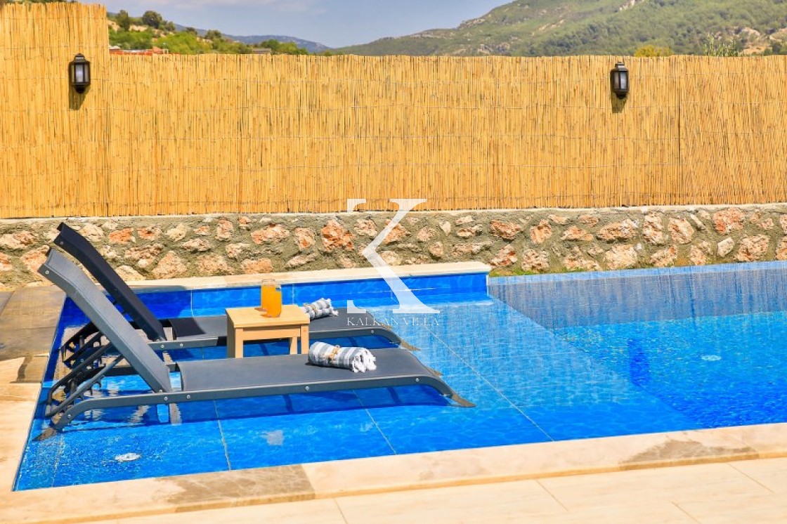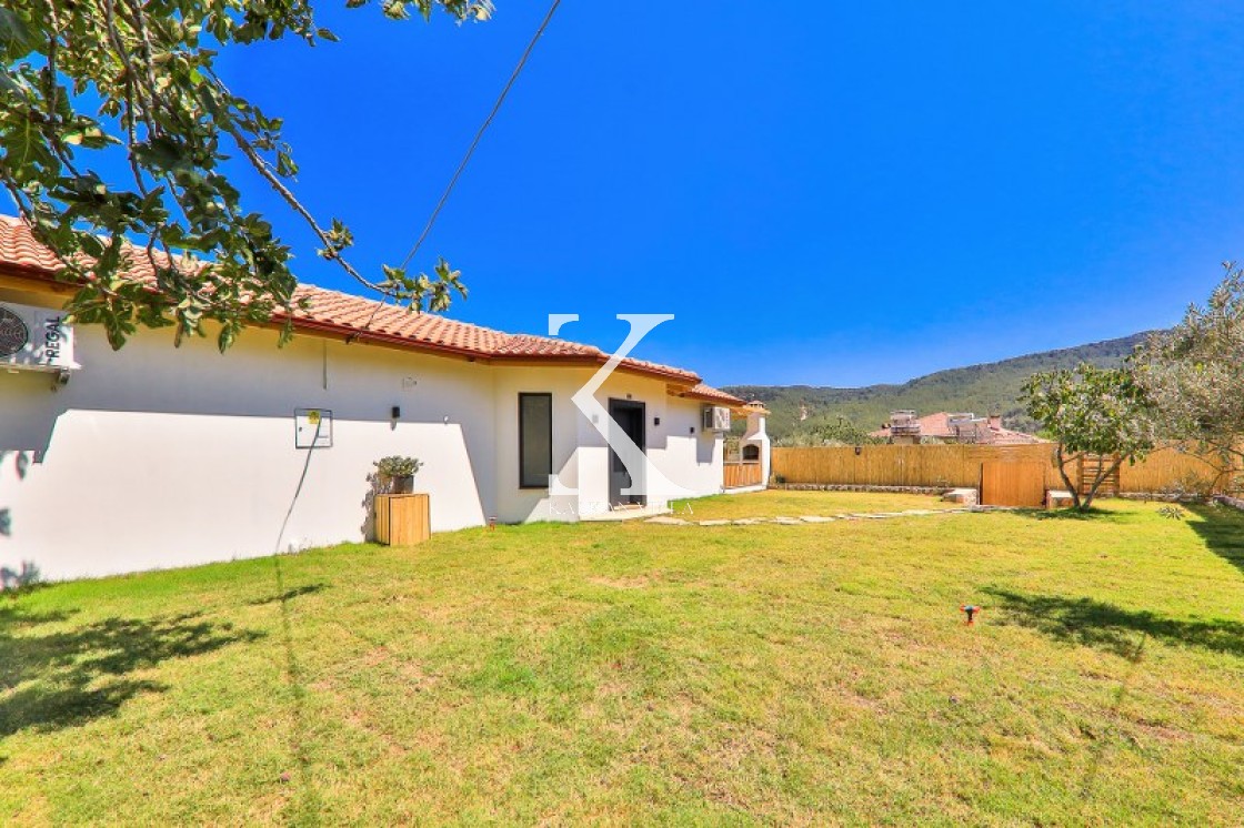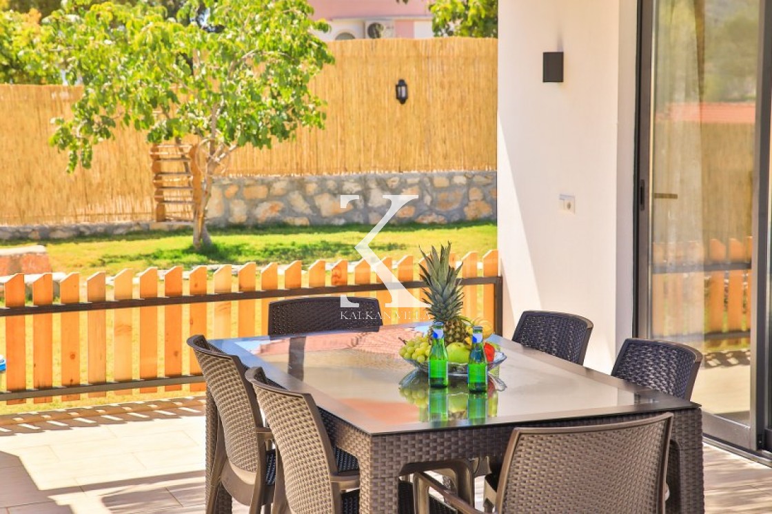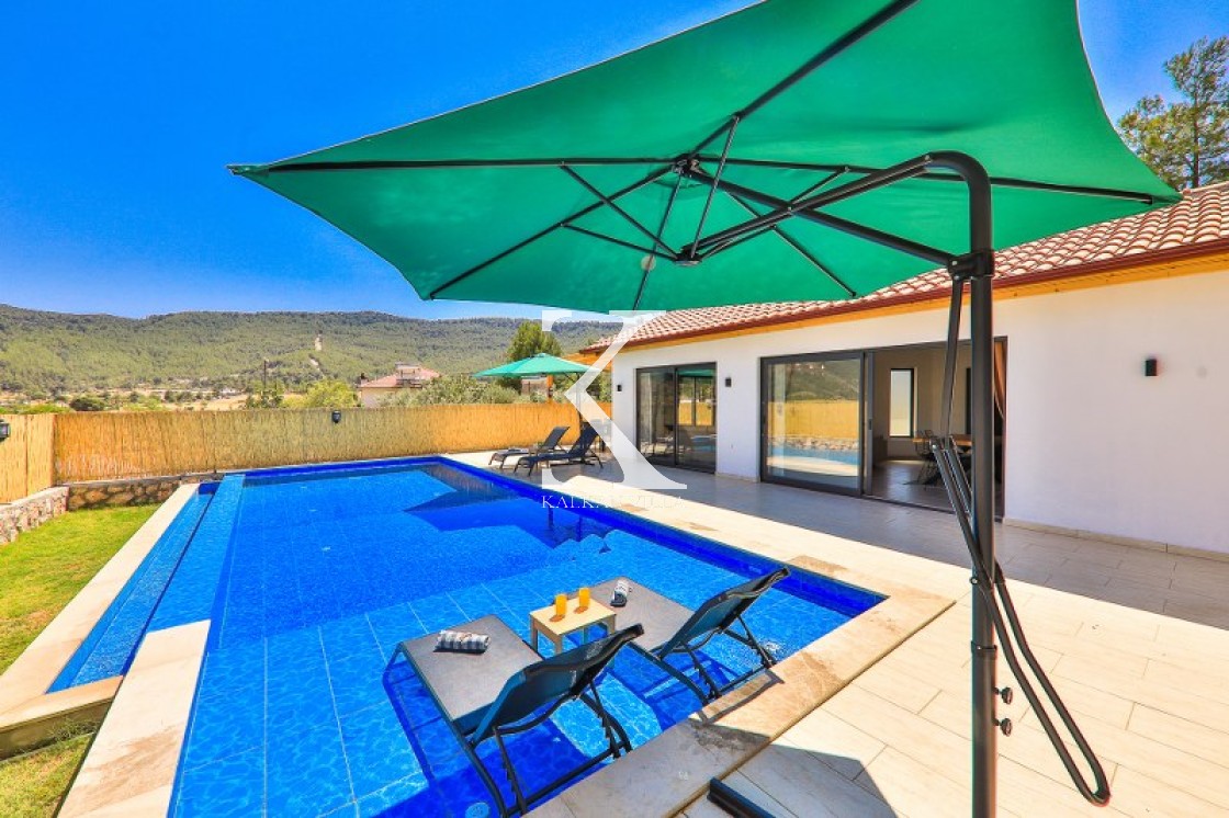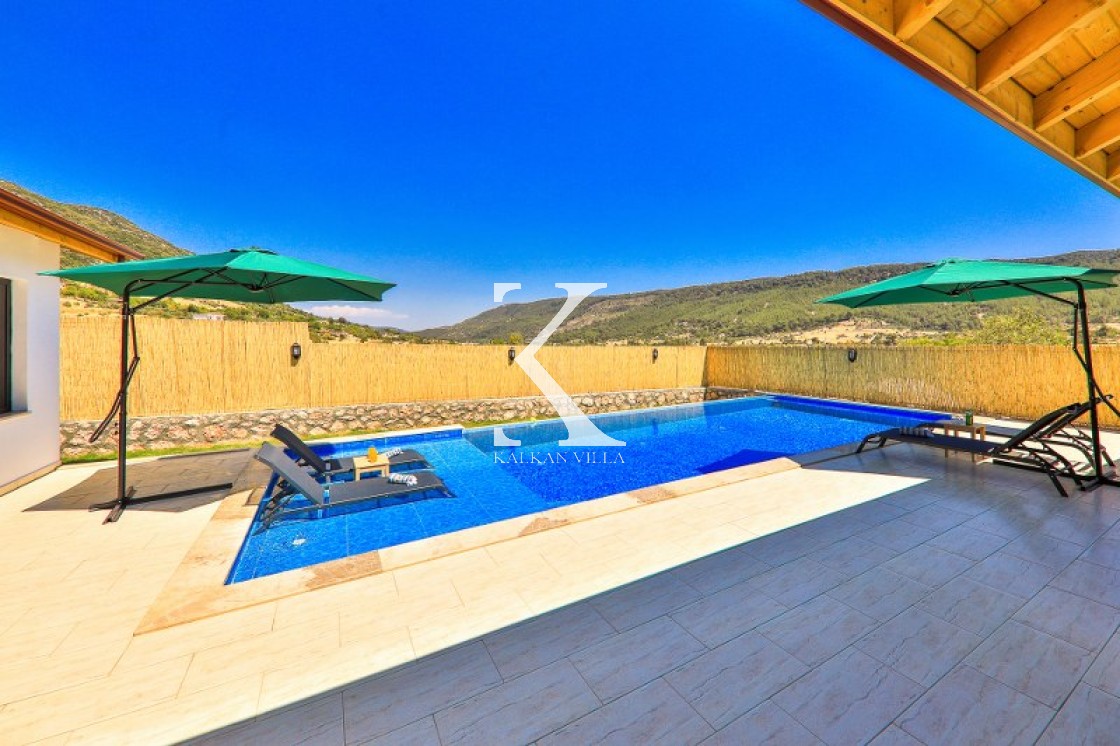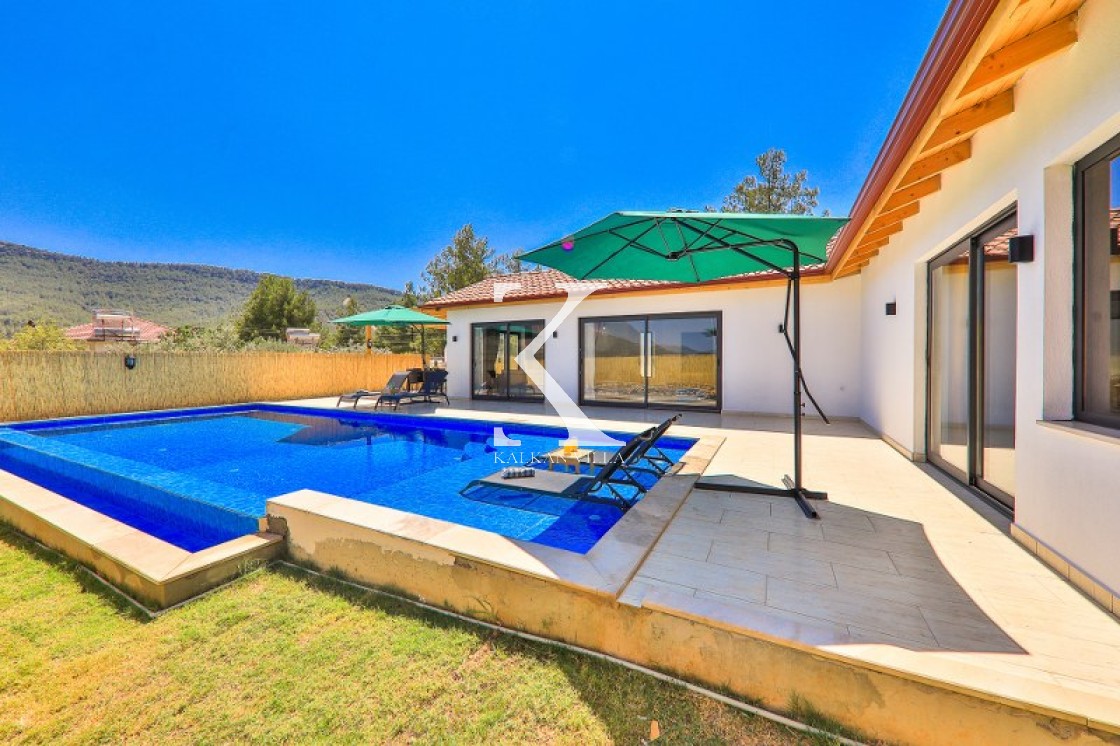 Villanın havuz terası ve bahçe alanı dış gözlerden korunaklı hale getirilmiştir. Böylece özellikle mahremiyetine önem veren misafirler için gönül rahatlığıyla tercih edilebilecek bir tatil ortamı sağlar. Geniş bahçesinde şezlonglar, salıncak, yemek alanı ve barbekü ile doğa manzarası eşliğinde keyifli anlar yaşayabilirsiniz.