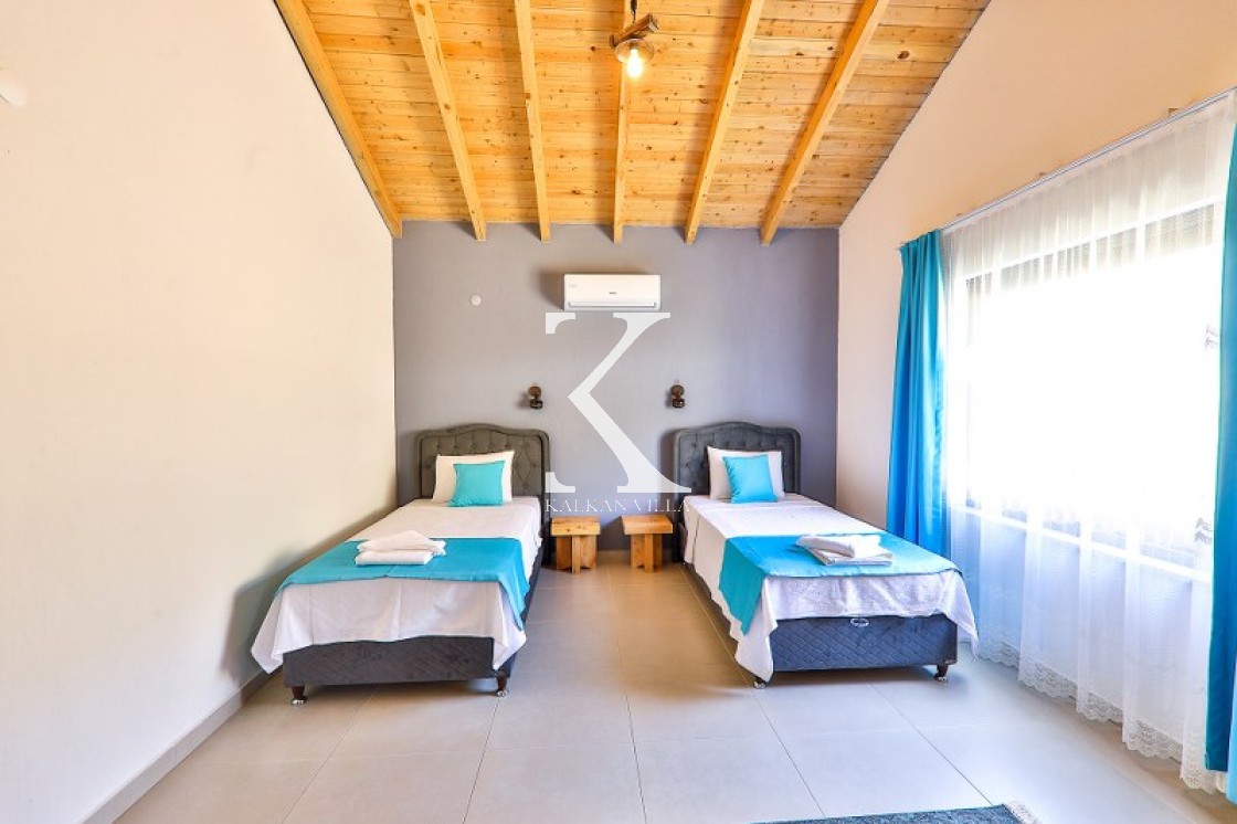 2 adet tek kişilik yatak, klima, elbise dolabı, komodin, makyaj masası, özel banyo ve tuvalet.