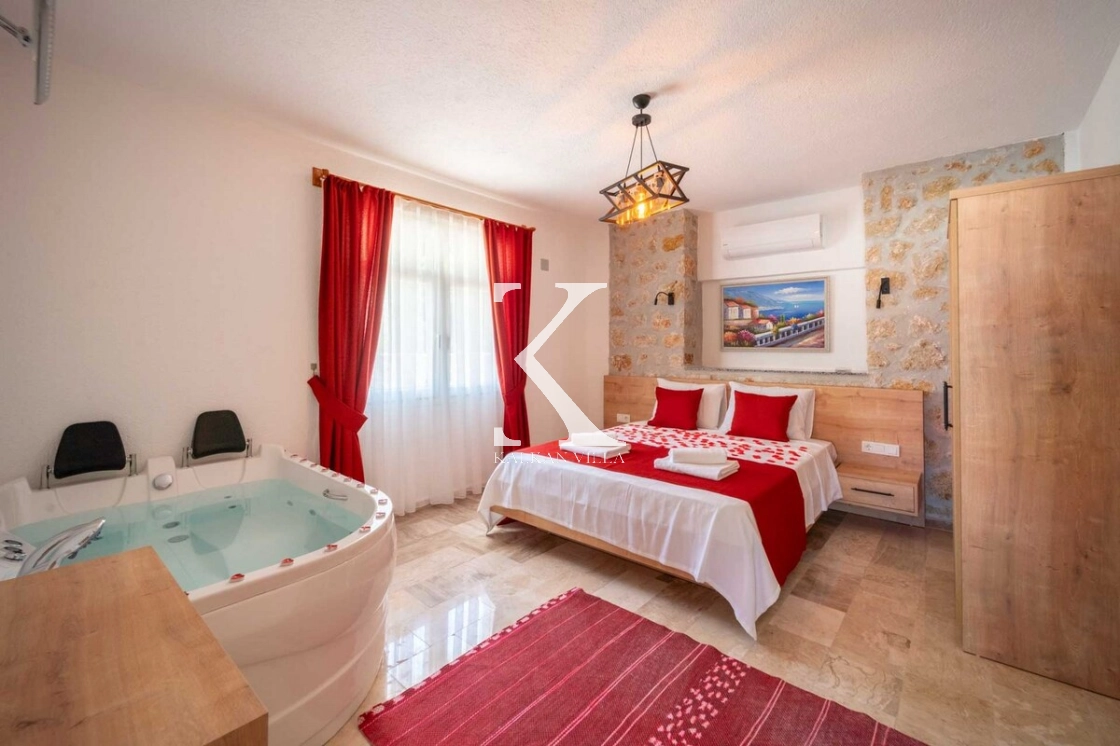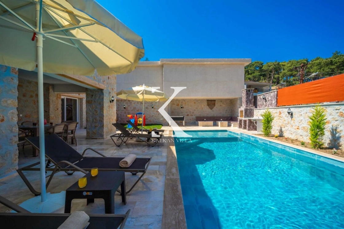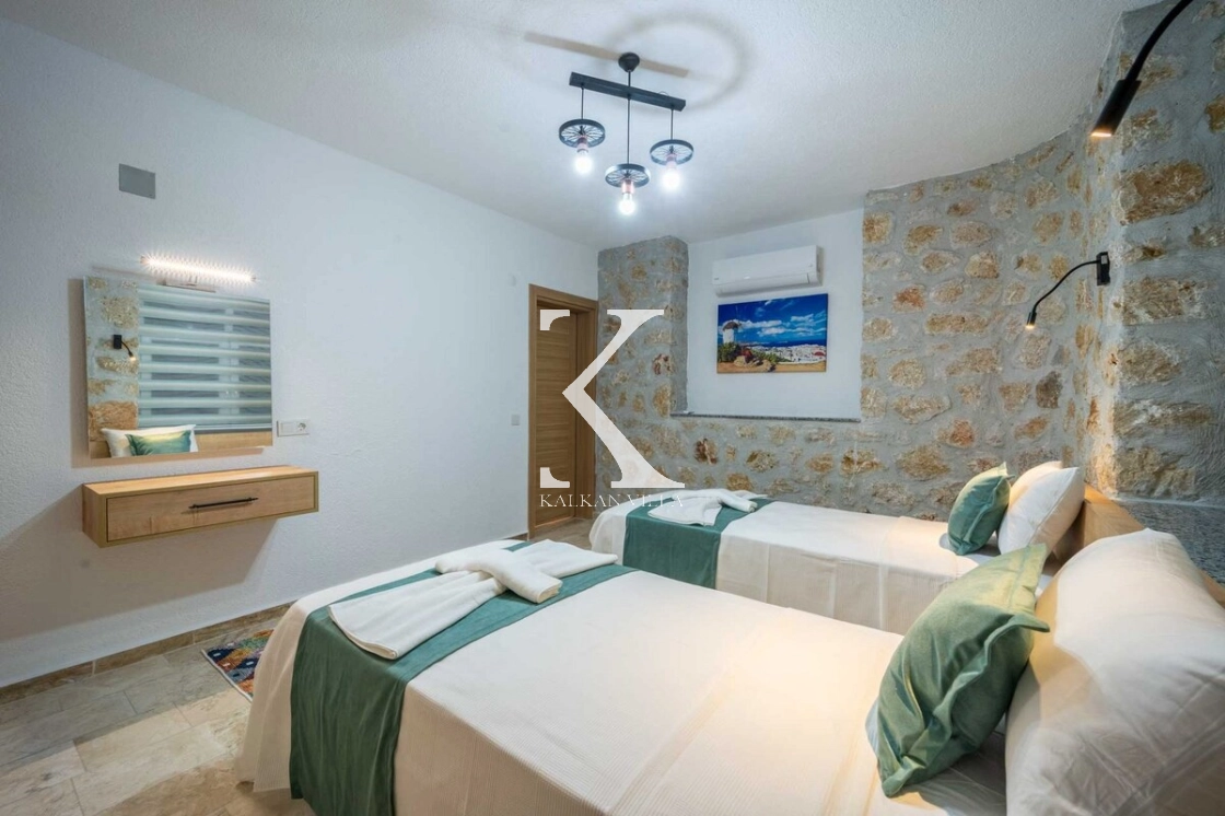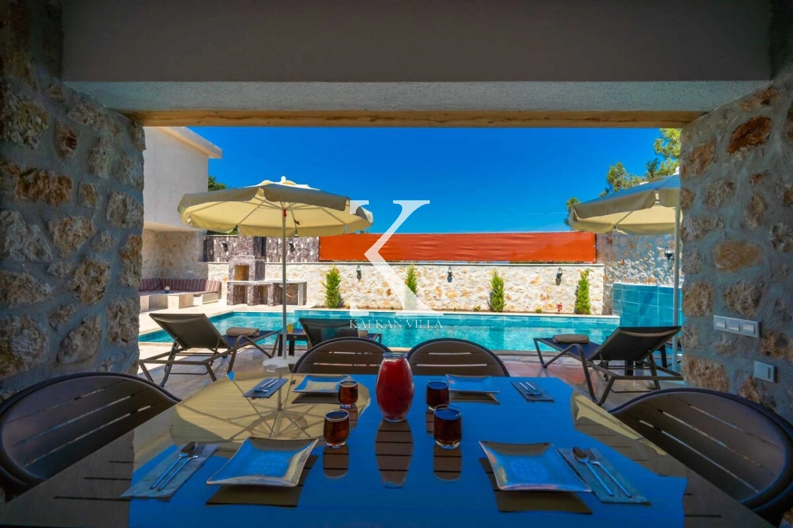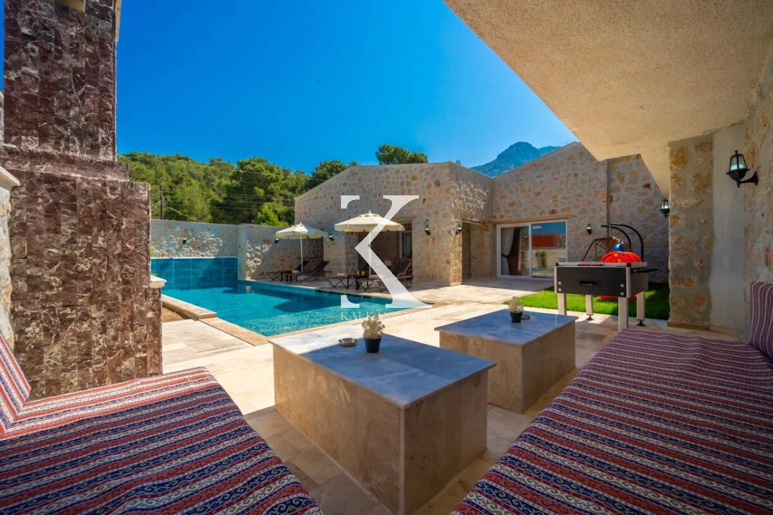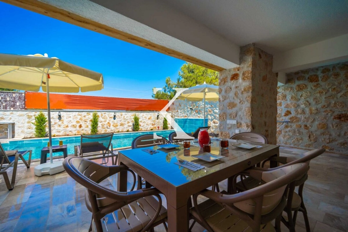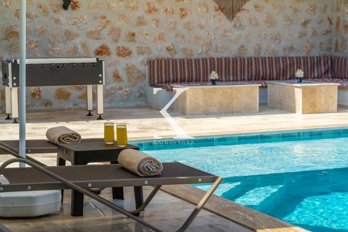 Villa Zey 6, Kalkan’ın Akbel bölgesinde, doğanın kalbinde konumlanan; taş mimarisi, korunaklı yapısı ve modern iç tasarımı ile öne çıkan özel bir tatil villasıdır.