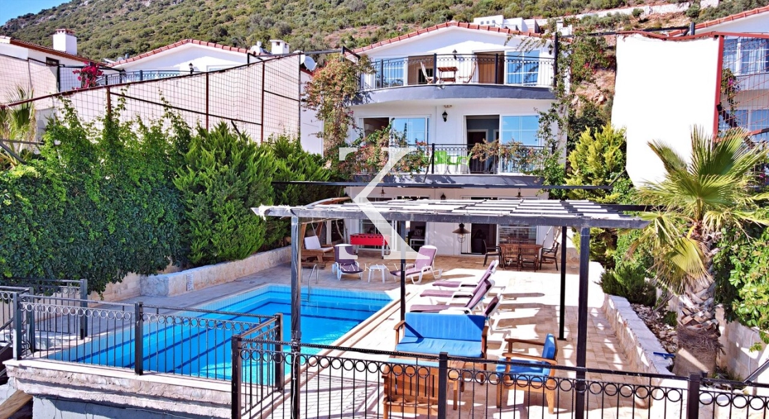 Tamamen korunaklı havuzu ve bahçesi sayesinde muhafazakâr misafirler için de uygundur. Zemin katta geniş bir salon ve mutfak, üst katlarda ise tamamı deniz manzaralı üç yatak odası bulunmaktadır. Sabahları Akdeniz’in eşsiz maviliğine uyanarak güne huzurla başlayabilirsiniz.
