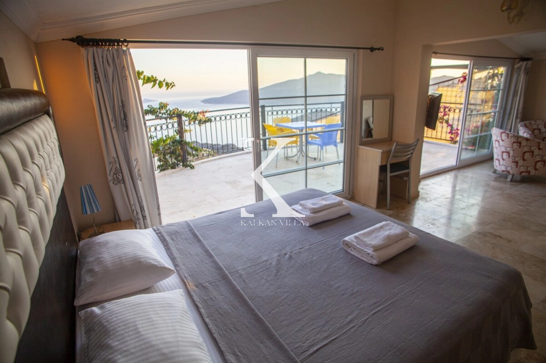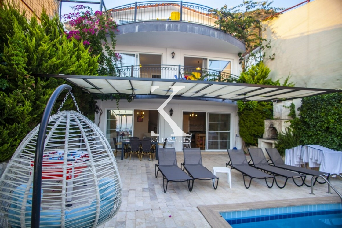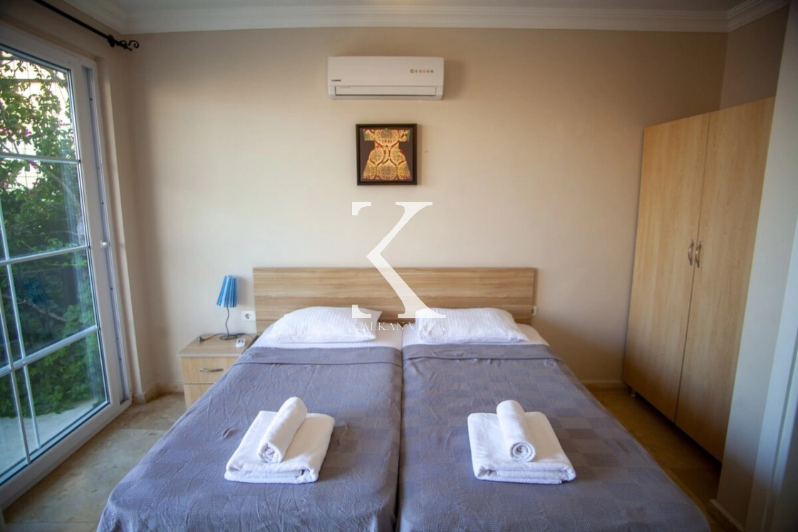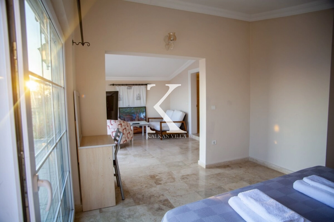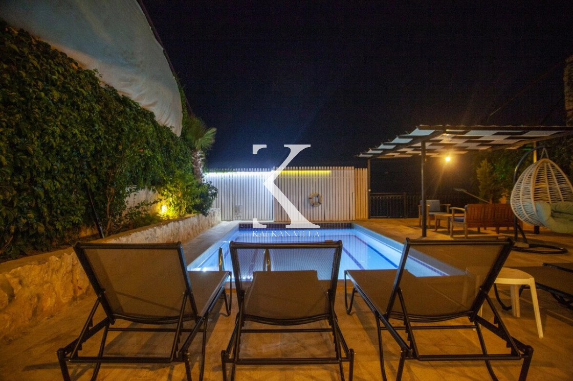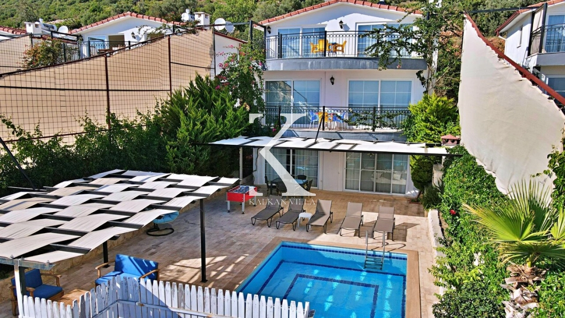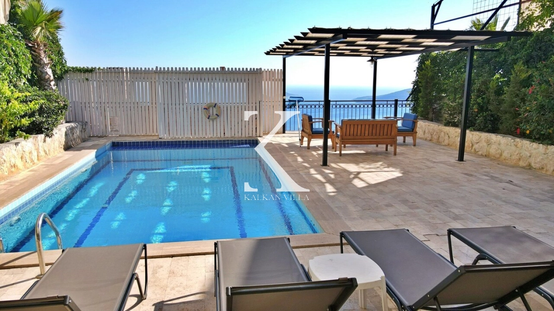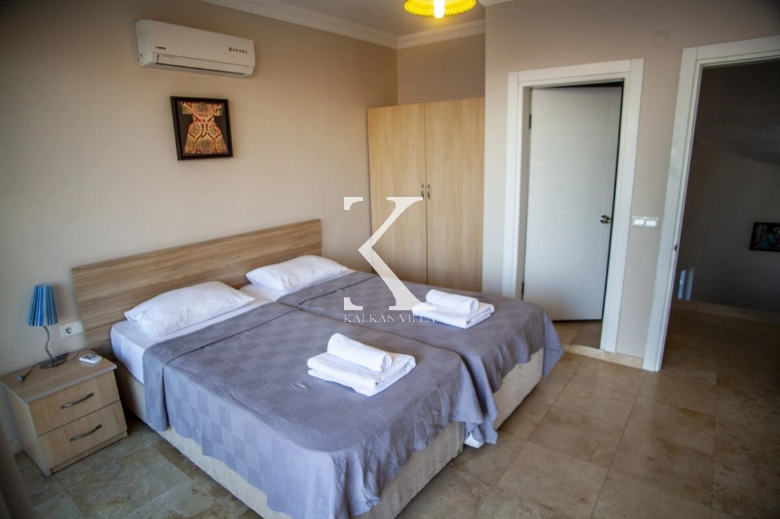 Tamamen korunaklı havuzu ve bahçesi sayesinde muhafazakâr misafirler için de uygundur. Zemin katta geniş bir salon ve mutfak, üst katlarda ise tamamı deniz manzaralı üç yatak odası bulunmaktadır. Sabahları Akdeniz’in eşsiz maviliğine uyanarak güne huzurla başlayabilirsiniz.