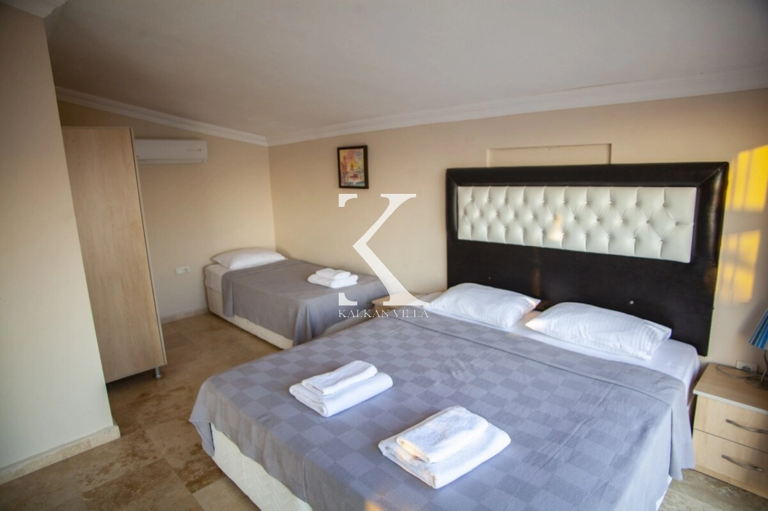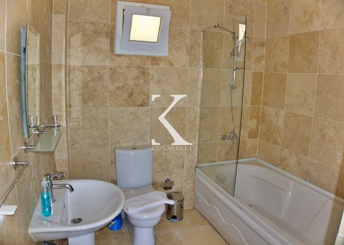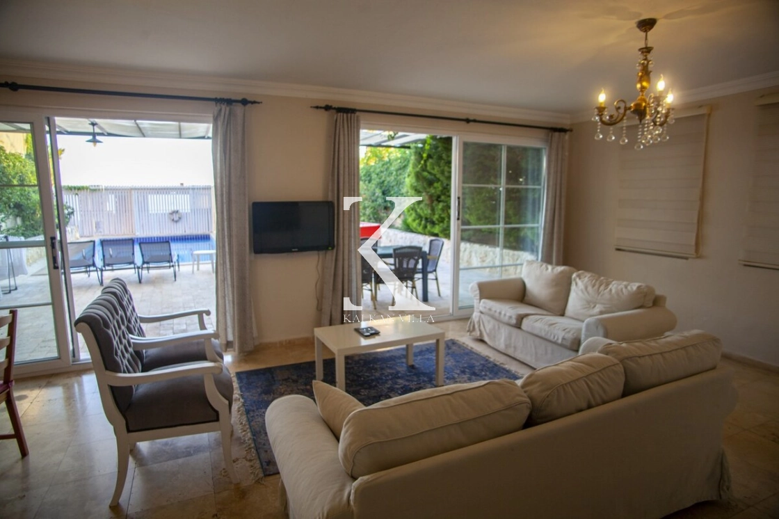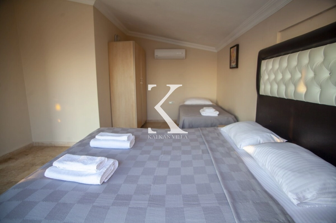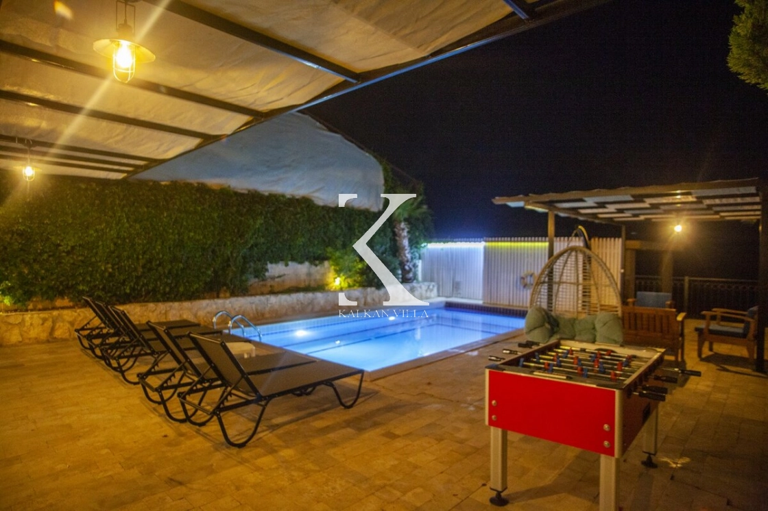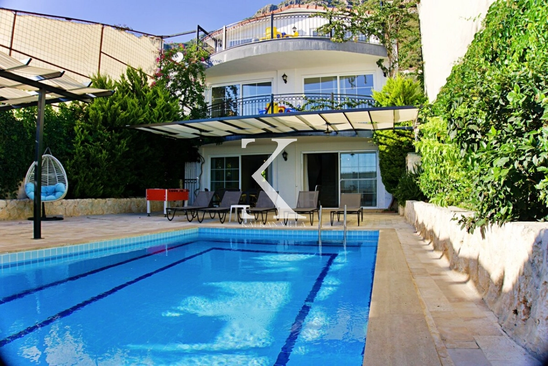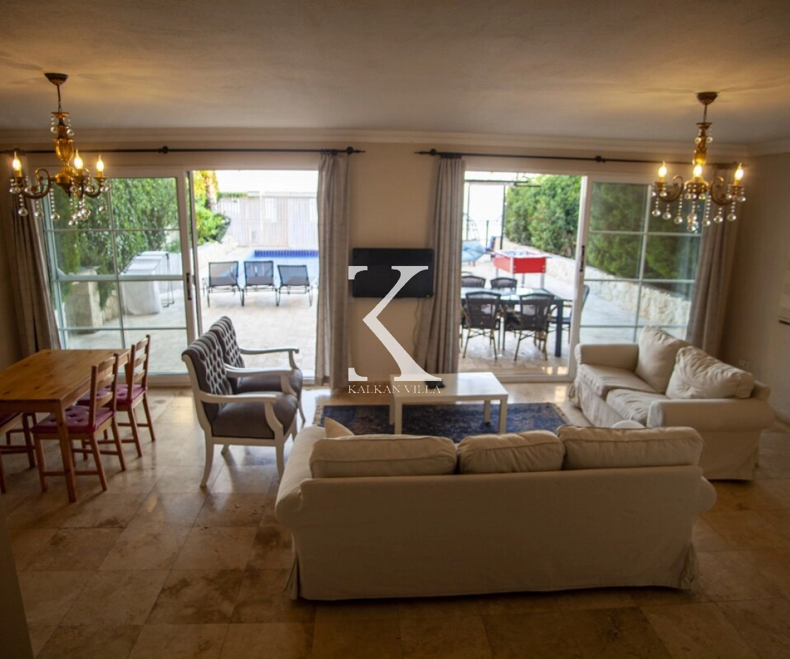 Tamamen korunaklı havuzu ve bahçesi sayesinde muhafazakâr misafirler için de uygundur. Zemin katta geniş bir salon ve mutfak, üst katlarda ise tamamı deniz manzaralı üç yatak odası bulunmaktadır. Sabahları Akdeniz’in eşsiz maviliğine uyanarak güne huzurla başlayabilirsiniz.