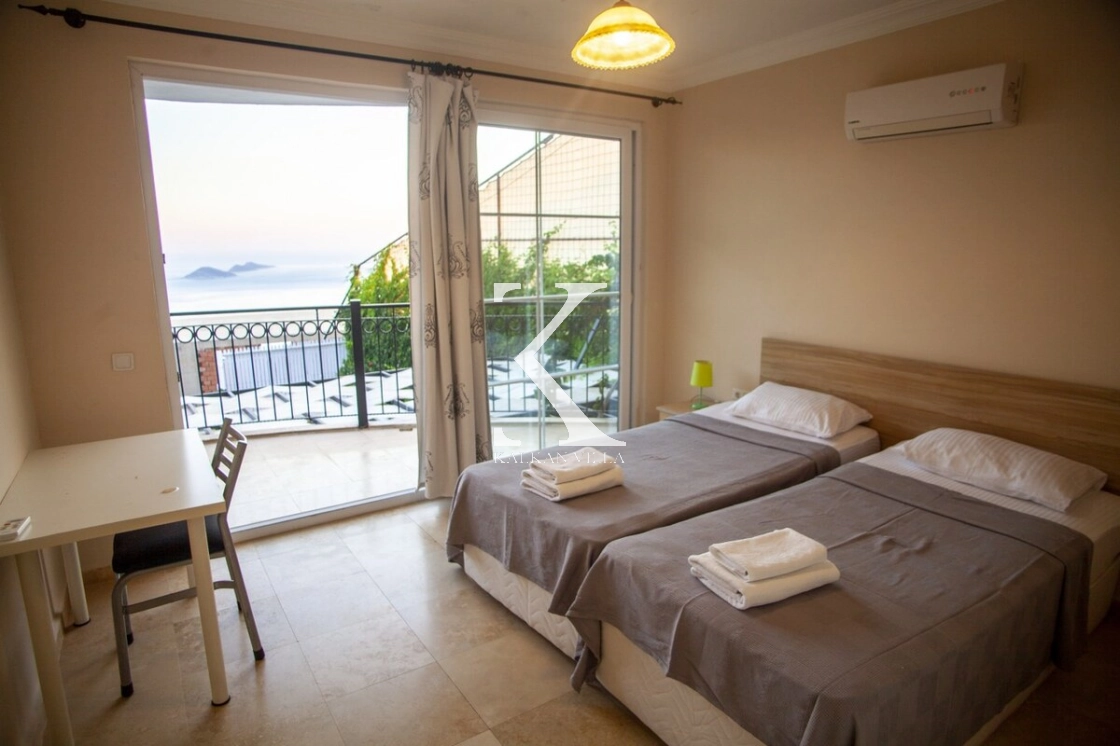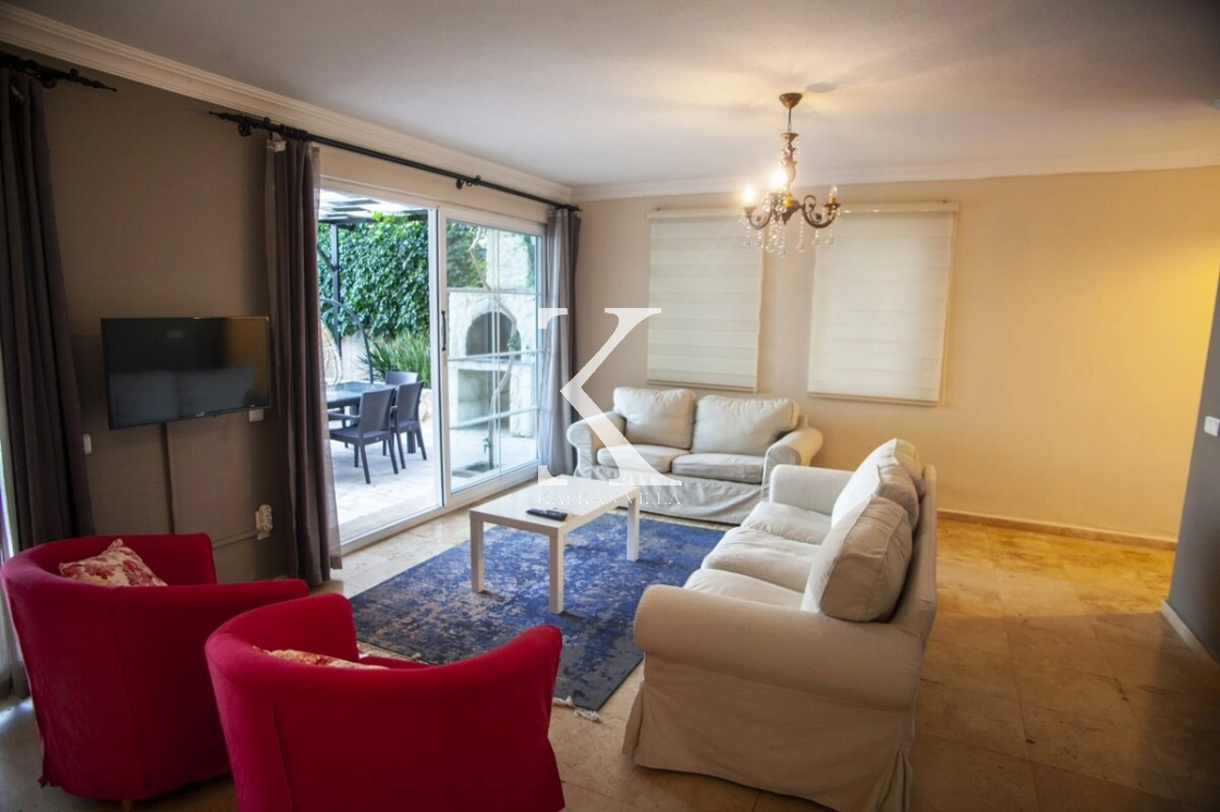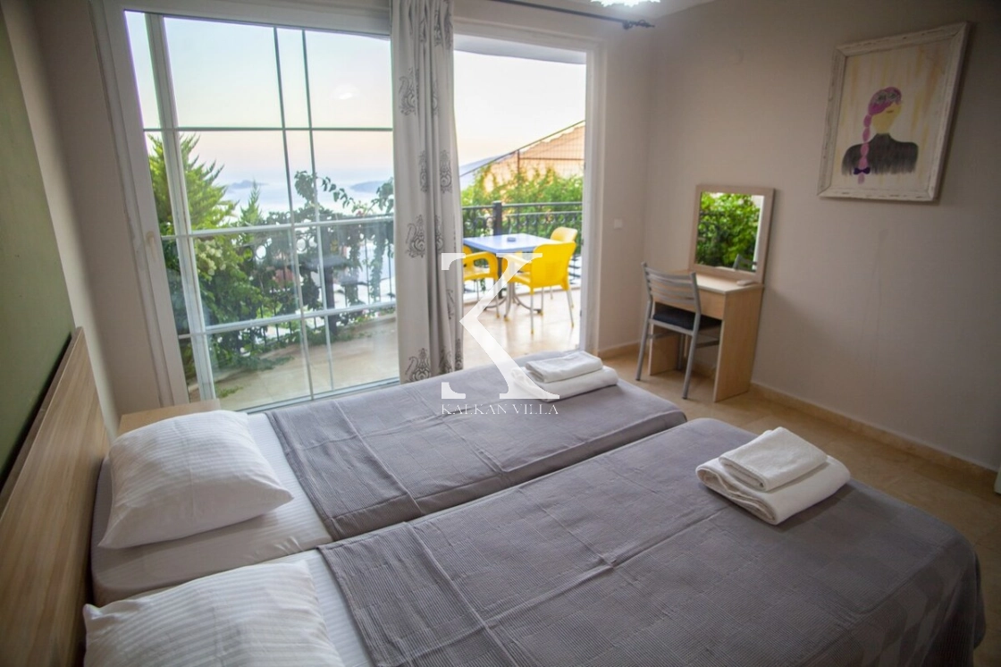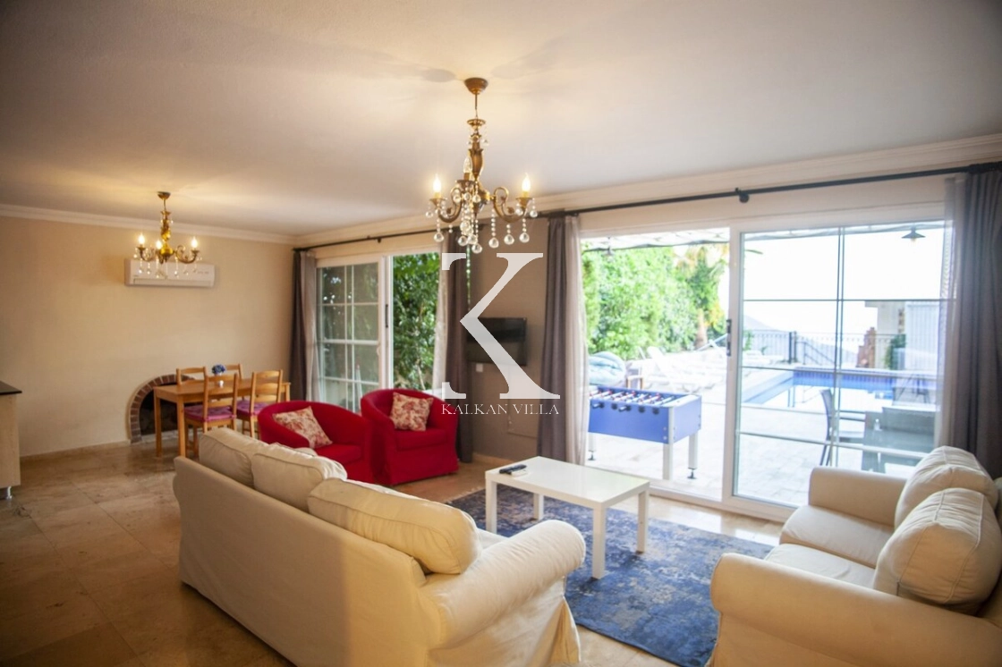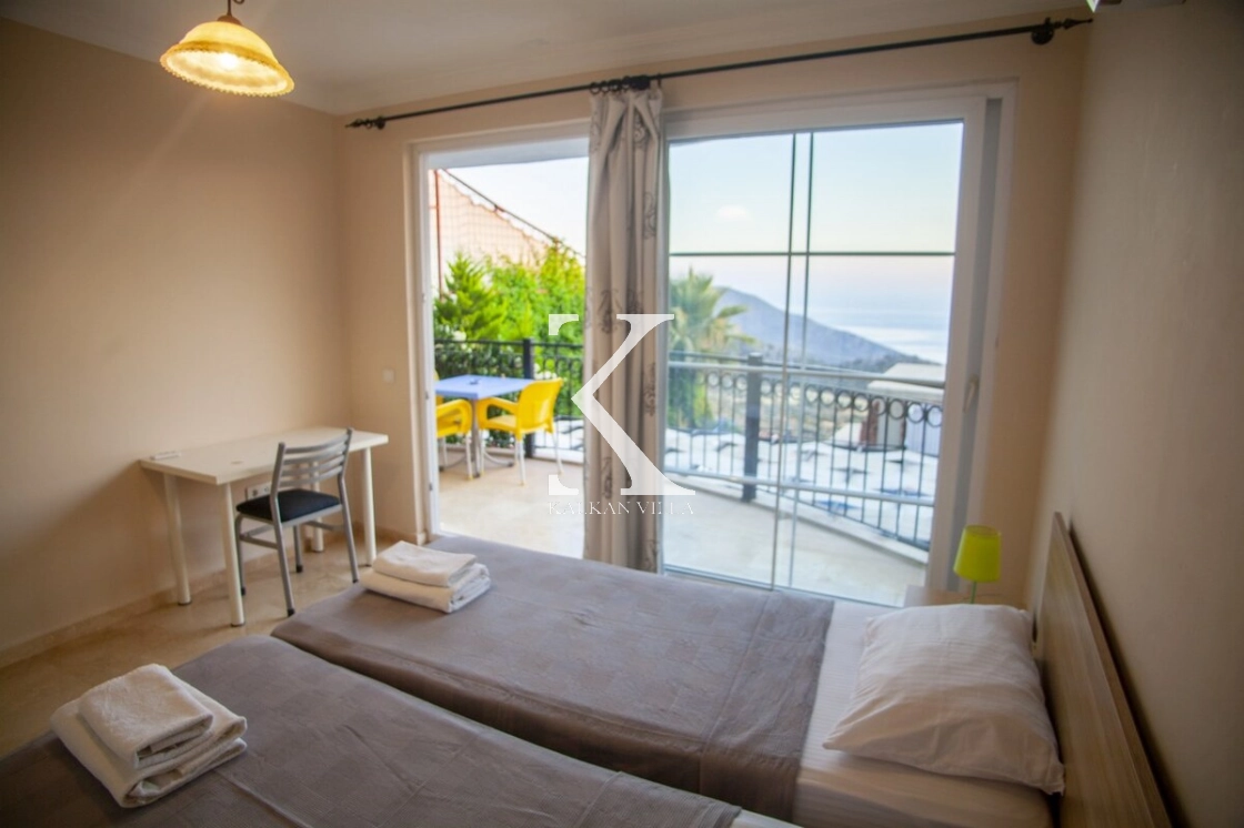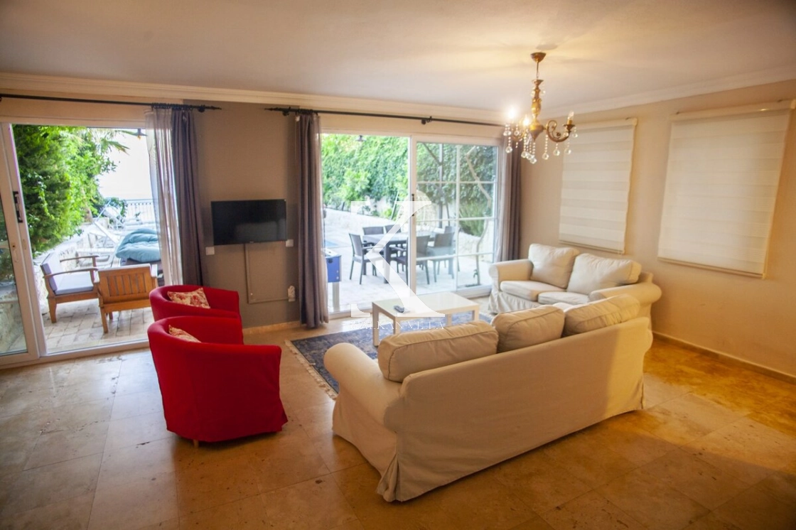 Tamamen korunaklı havuzu ve bahçesi sayesinde muhafazakâr misafirler için de uygundur. Zemin katta geniş bir salon ve mutfak, üst katlarda ise tamamı deniz manzaralı üç yatak odası bulunmaktadır. Sabahları Akdeniz’in eşsiz maviliğine uyanarak güne huzurla başlayabilirsiniz.