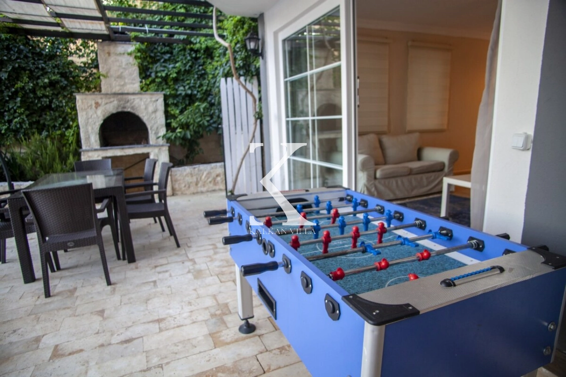 Villanın bahçesinde özel yüzme havuzu, şezlonglar, salıncak, langırt, yemek masası, barbekü ve oturma alanı bulunmakta olup, doğa içinde hem huzurlu hem de keyifli bir tatil deneyimi sunar.