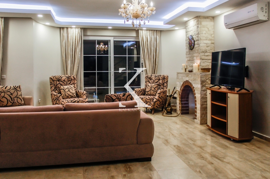 Perdeleme sistemiyle mahremiyetin korunduğu Villa Zümrüt 5, özellikle muhafazakâr aileler için konforlu ve güvenli bir konaklama sunar.
